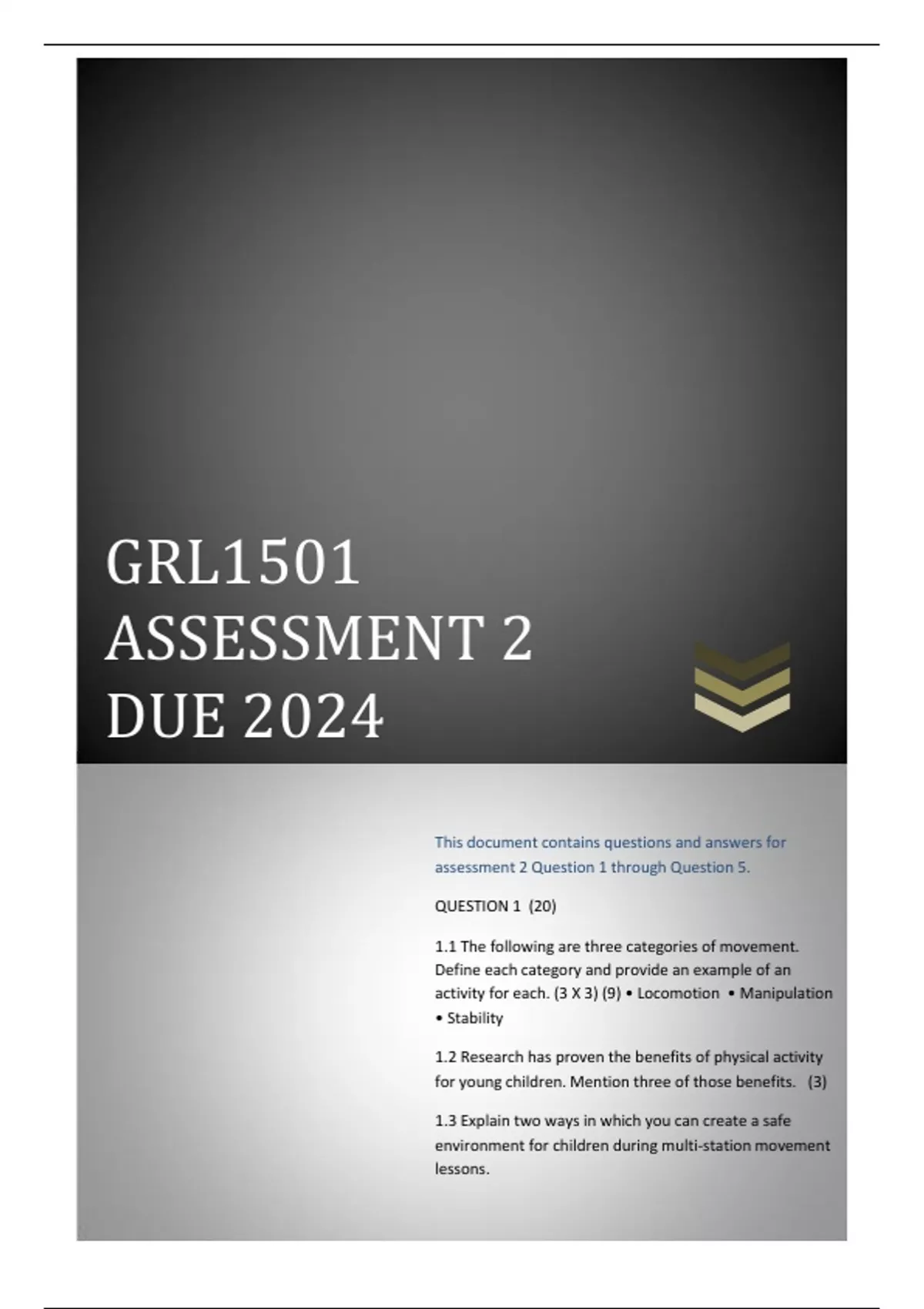 example of an activity for each. (3 X 3) (9) • Locomotion • Manipulation • Stability