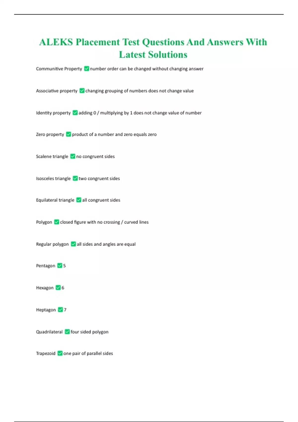 ALEKS Placement Test Questions And Answers With Latest Solutions ALEKS Placement Test Questions And Answers With Latest Solutions