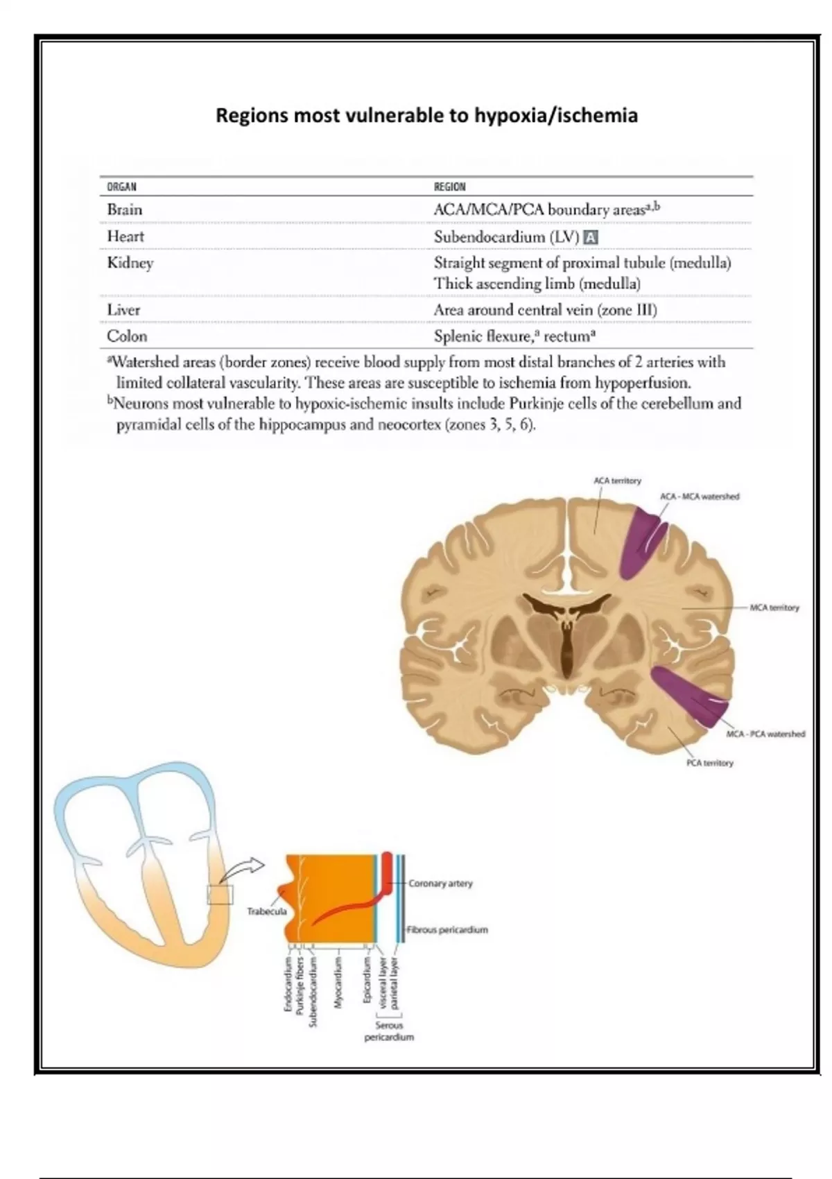 Regions most vulnerable to hypoxia/ischemia