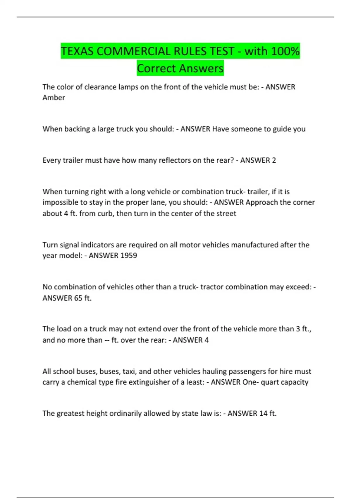 TEXAS COMMERCIAL RULES TEST - with 100% Correct Answers