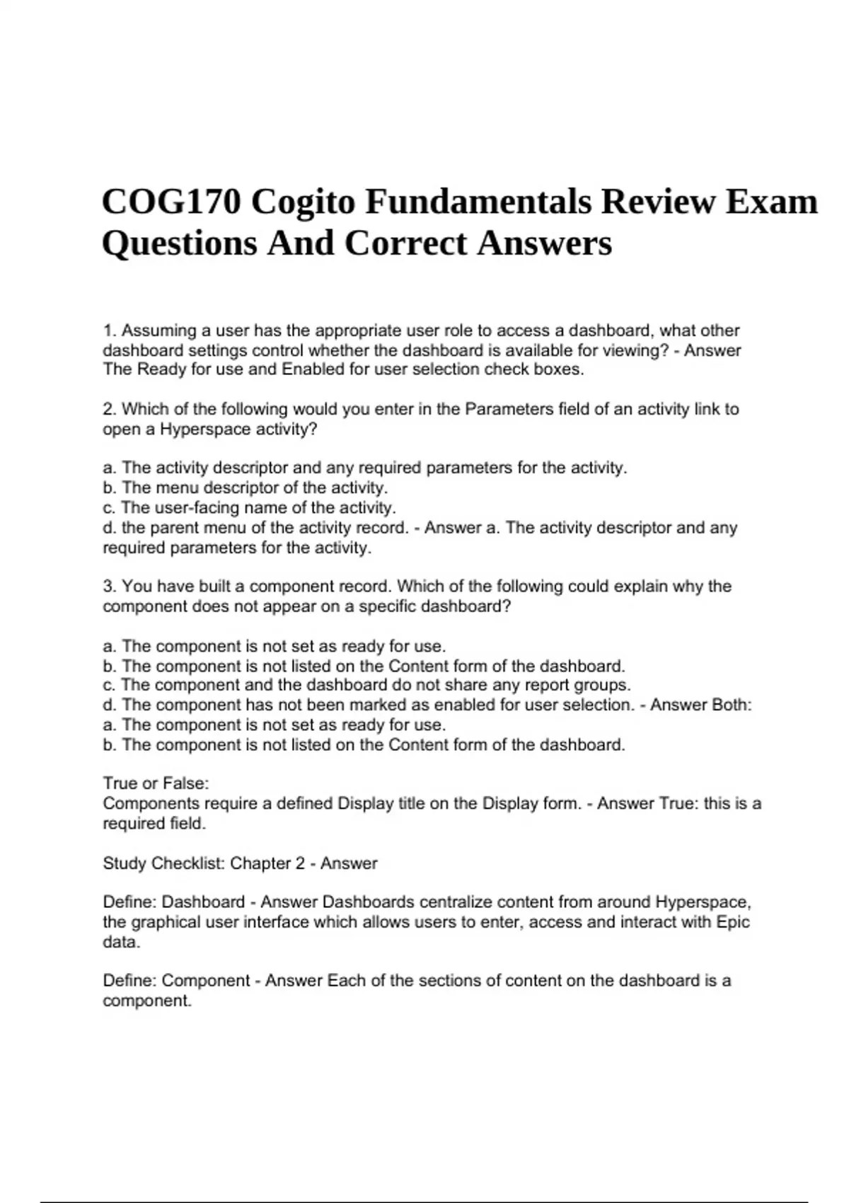 Define: Component - Answer Each of the sections of content on the dashboard is a