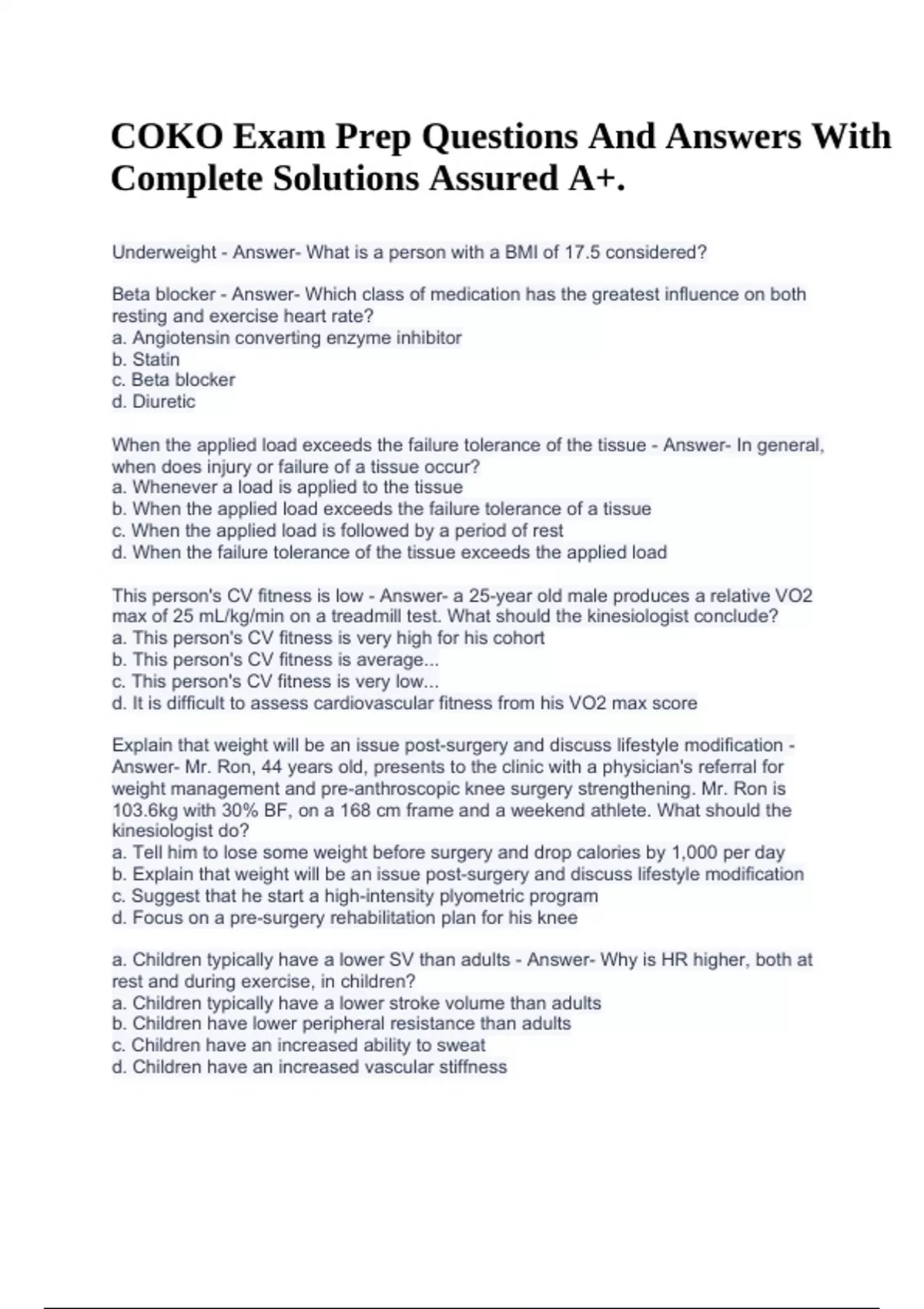 d. Increased CO, decreased MO - Answer- The kinesiologist is starting a training
