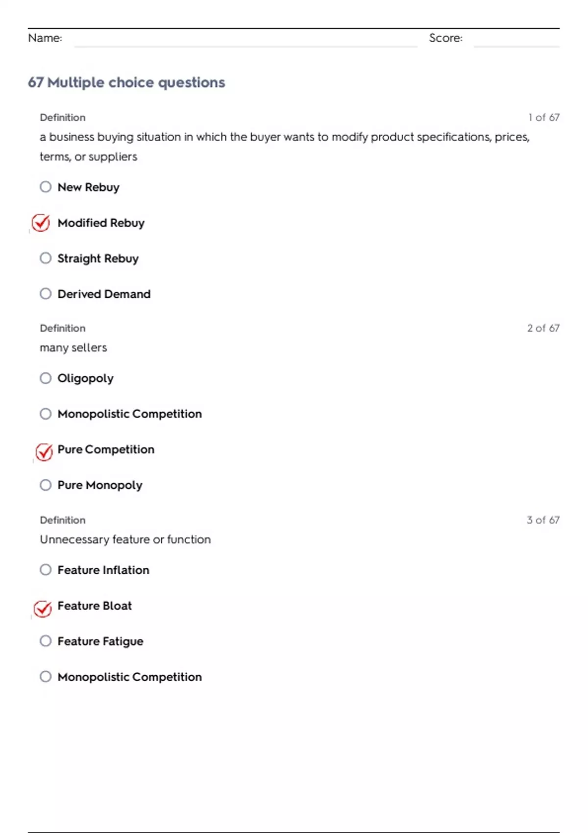 67 Multiple choice questions