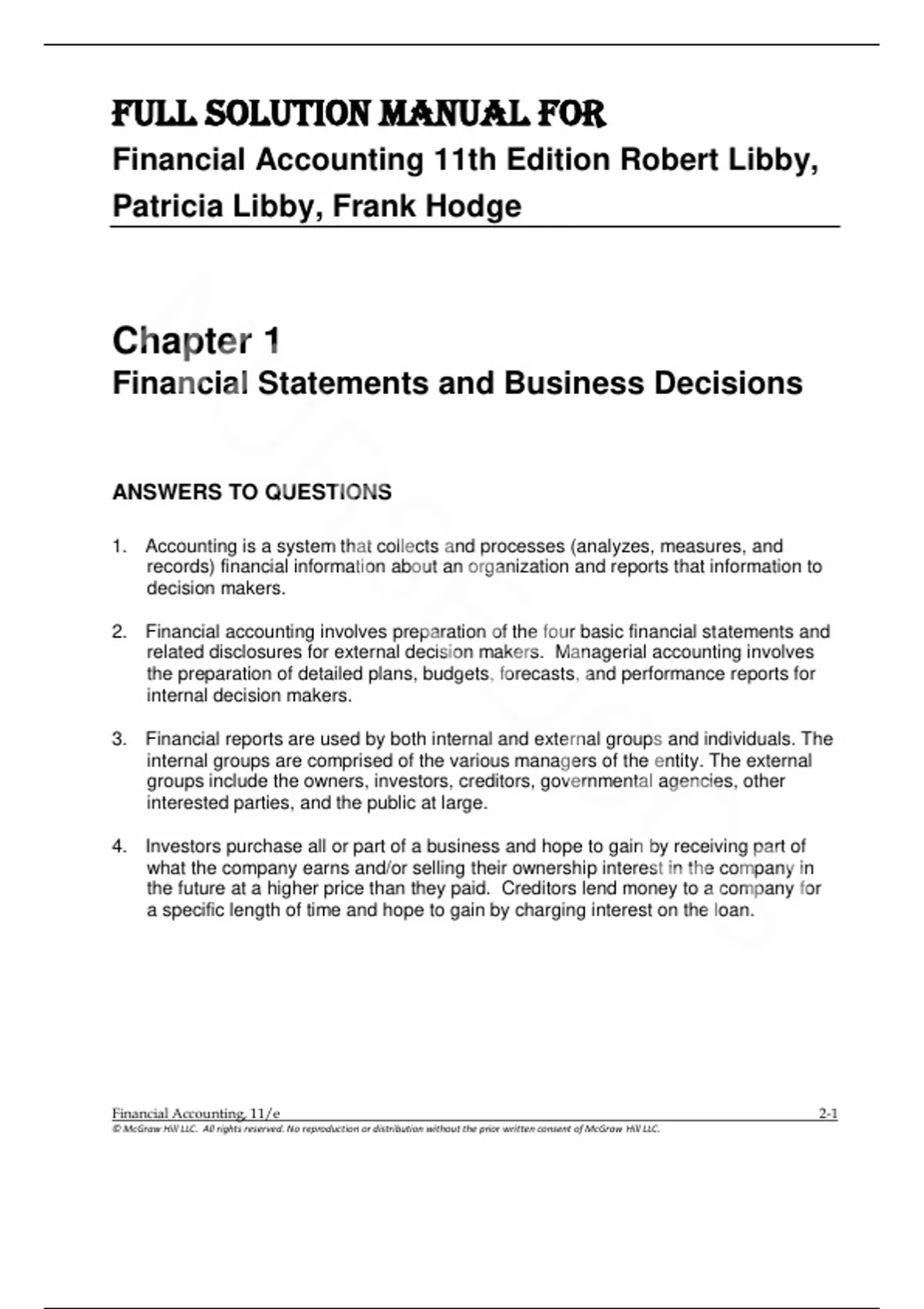 Solution Manual for Financial Accounting 11th Edition Robert Libby, Patricia Libby, Frank Hodge