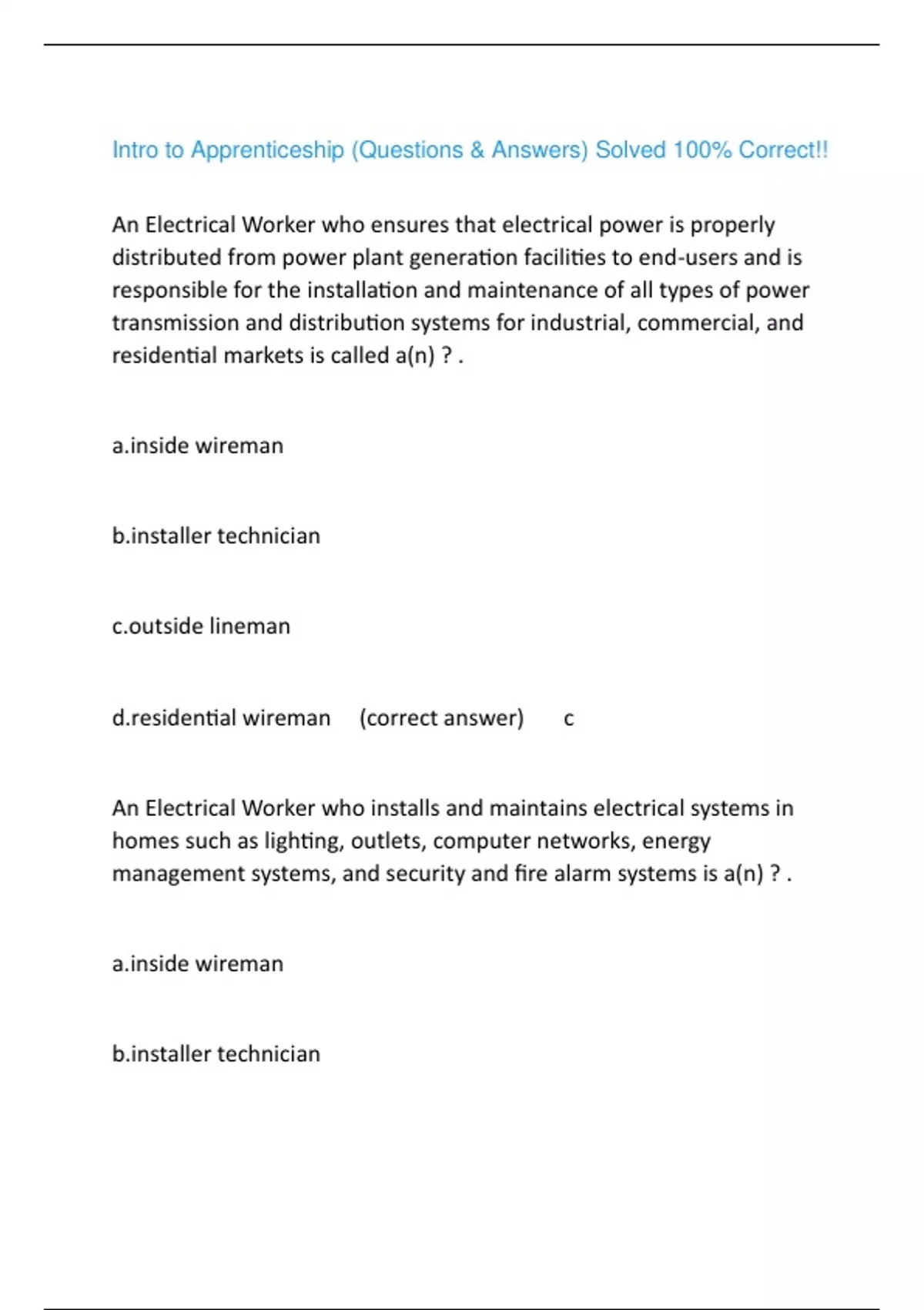 Intro to Apprenticeship (Questions & Answers) Solved 100% Correct!!