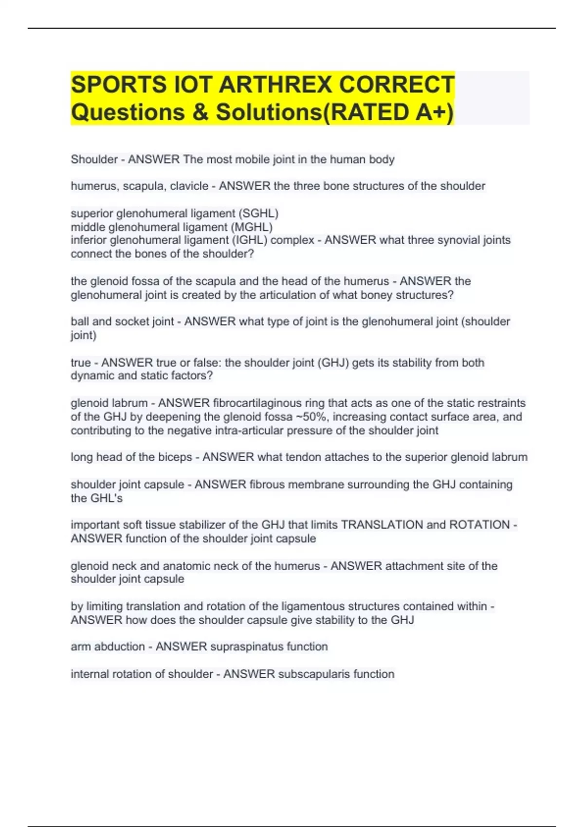 SPORTS IOT ARTHREX CORRECT Questions & Solutions(RATED A+)
