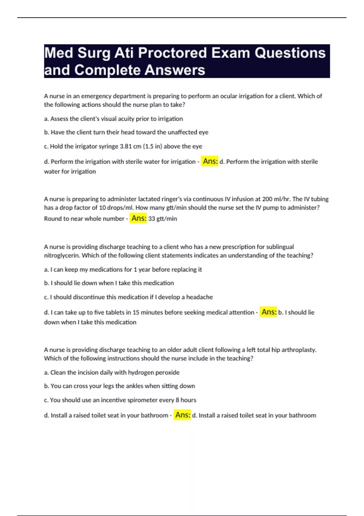 med surg ati proctored exam questions and complete