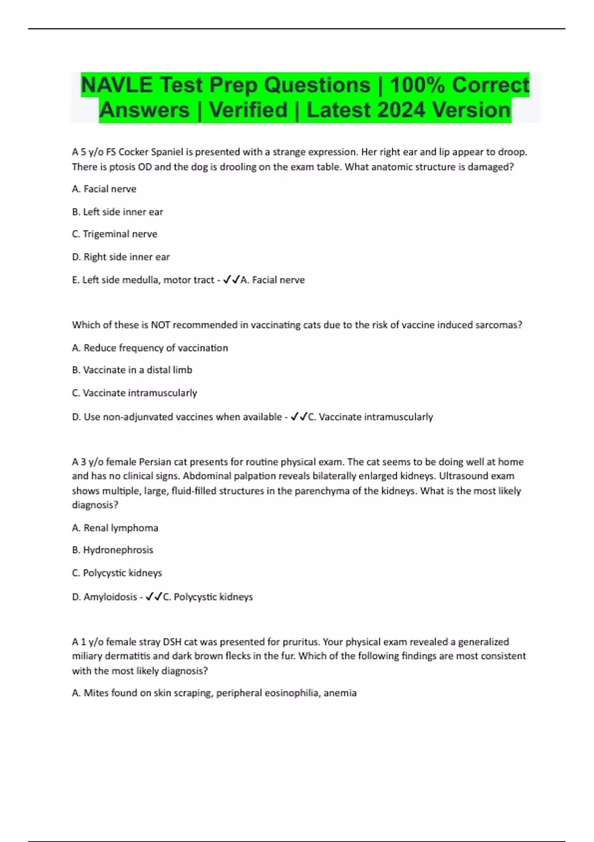 NAVLE Test Prep Questions | 100% Correct Answers | Verified | Latest 2024 Version