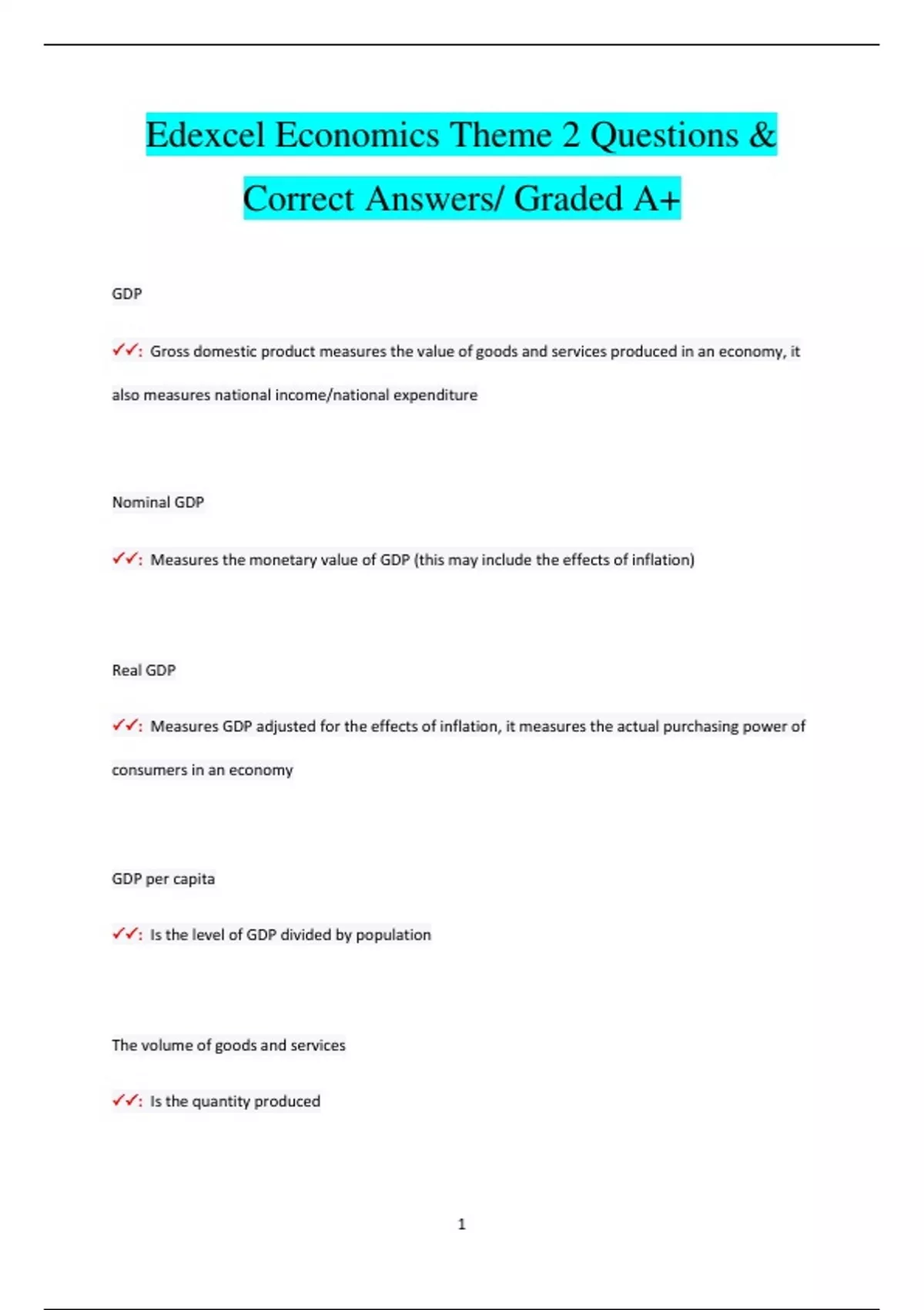Edexcel Economics Theme 2 Questions & Correct Answers/ Graded A+