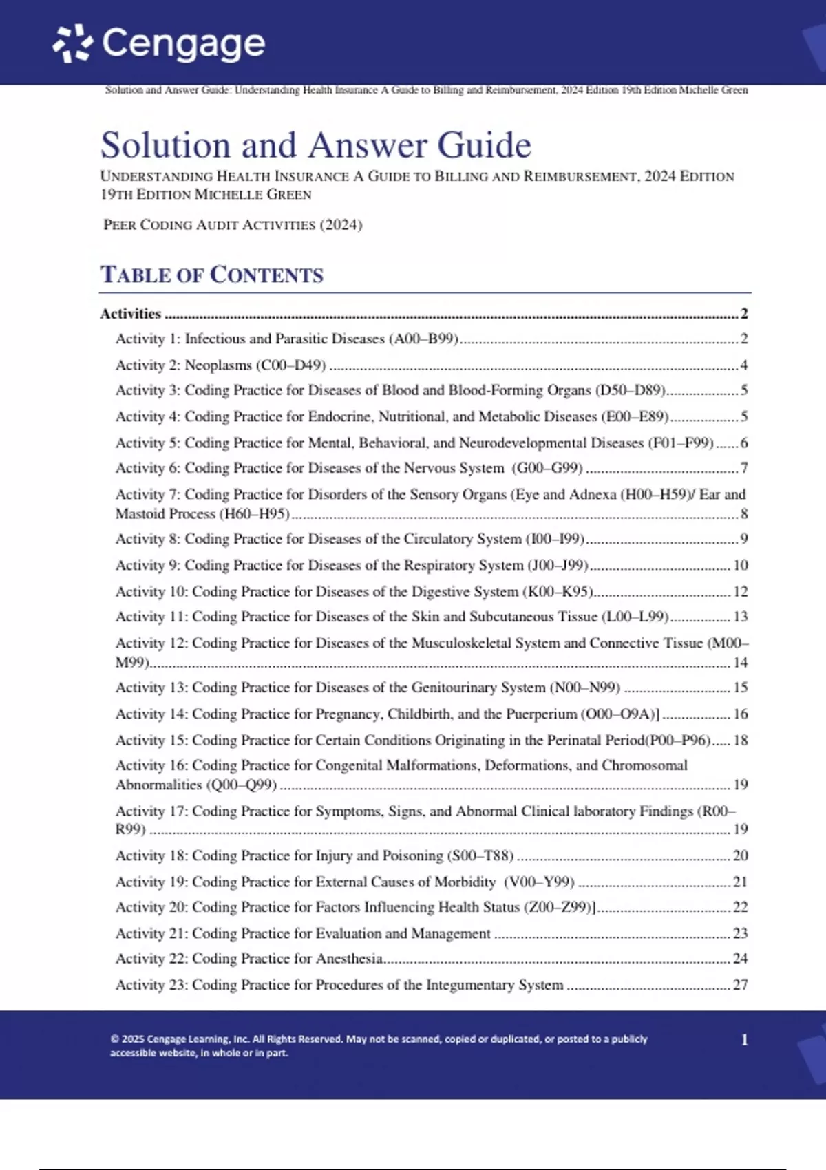 Solution Manual For Understanding Health Insurance A Guide to Billing and Reimbursement, 2024 Edition 19th Edition by Michelle Green