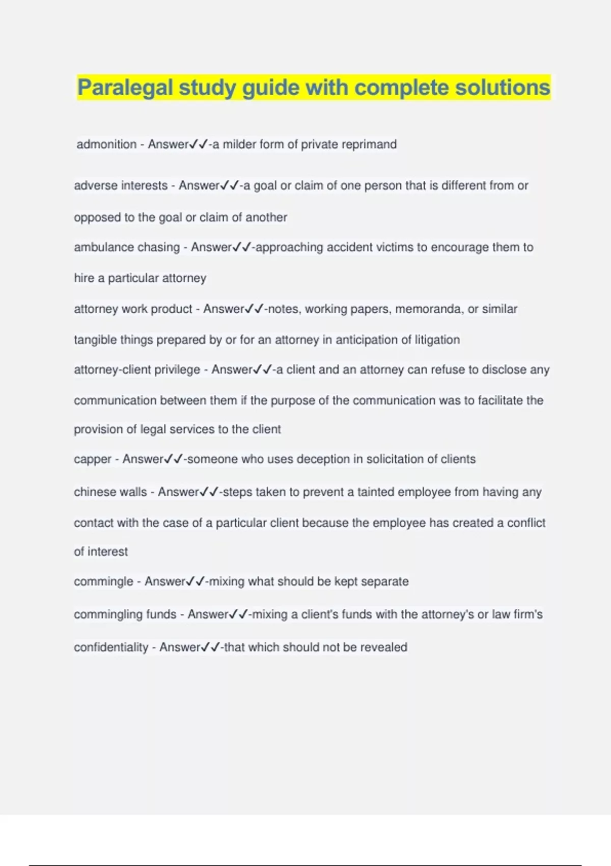 Paralegal study guide with complete solutions