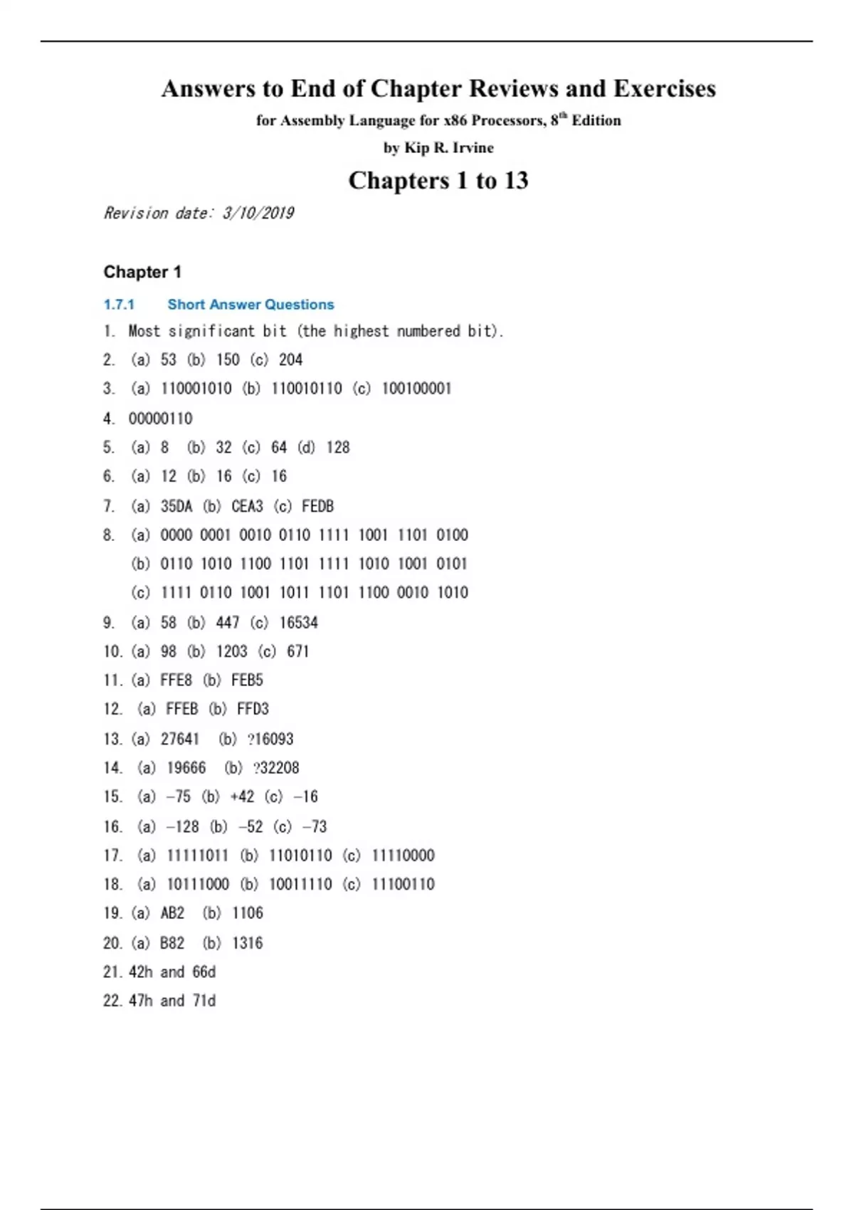 Solution Manual For Assembly Language for x86 Processors, 8th Edition by