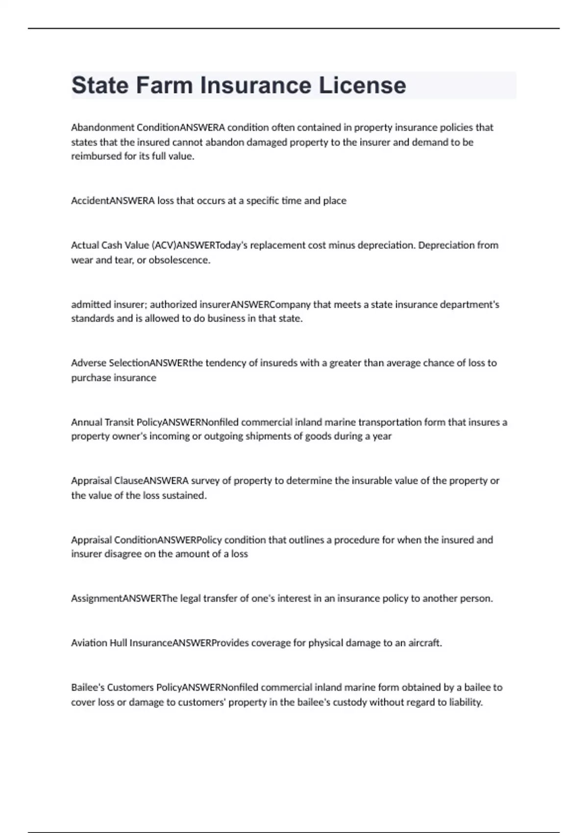 State Farm Insurance License Exam Questions And Answers (RATED 100%)