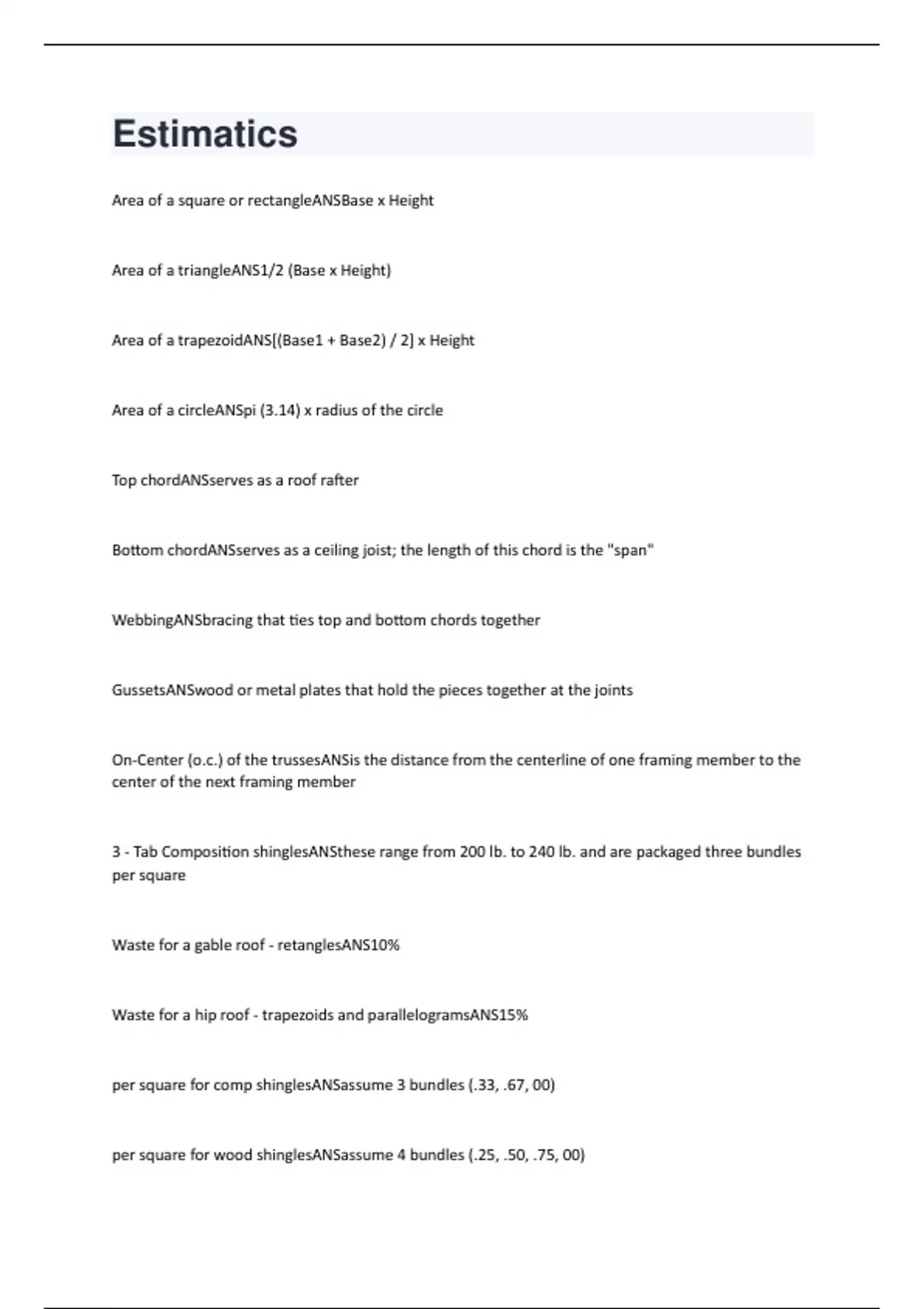 Estimatics Exam Questions And Answers (VERIFIED 100%)