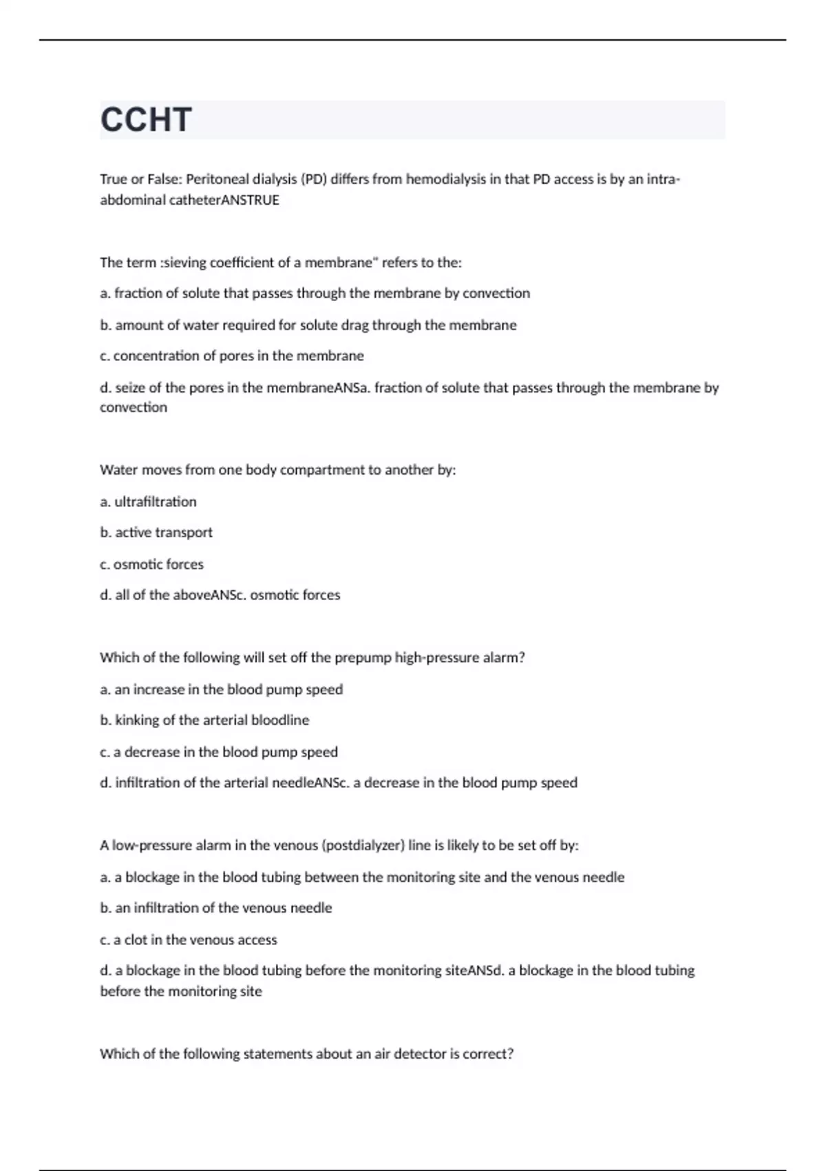 CCHT Exam Study Questions And Answers