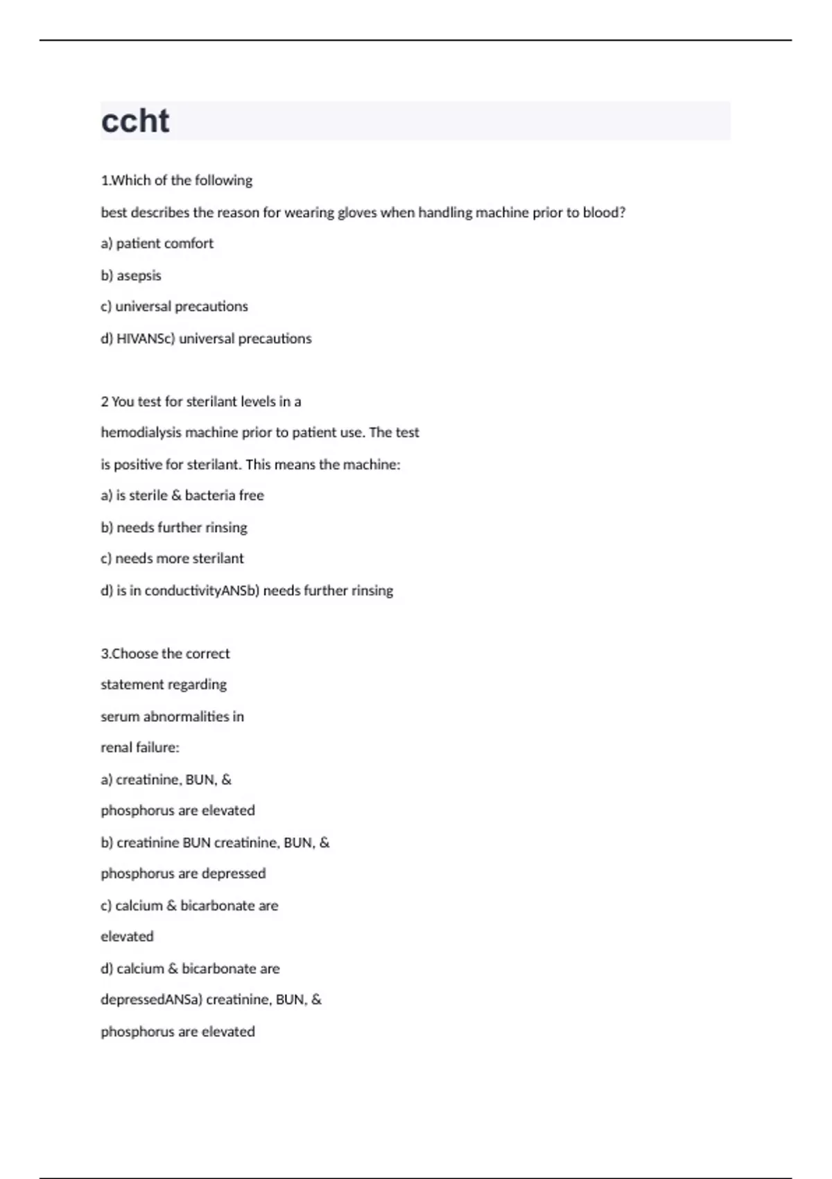 ccht exam practice questions and correctly done answers