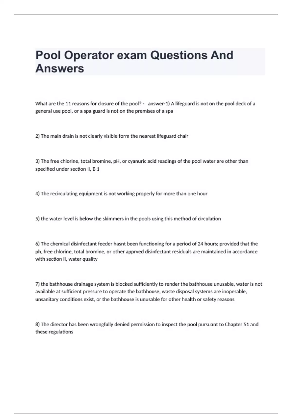 Certified Pool Operator Exam Bundle (Graded A)