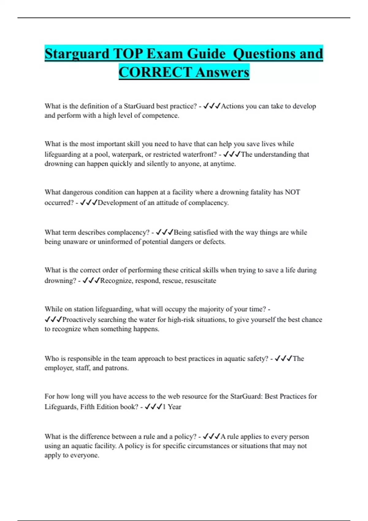 Starguard TOP Exam Guide Questions and CORRECT Answers