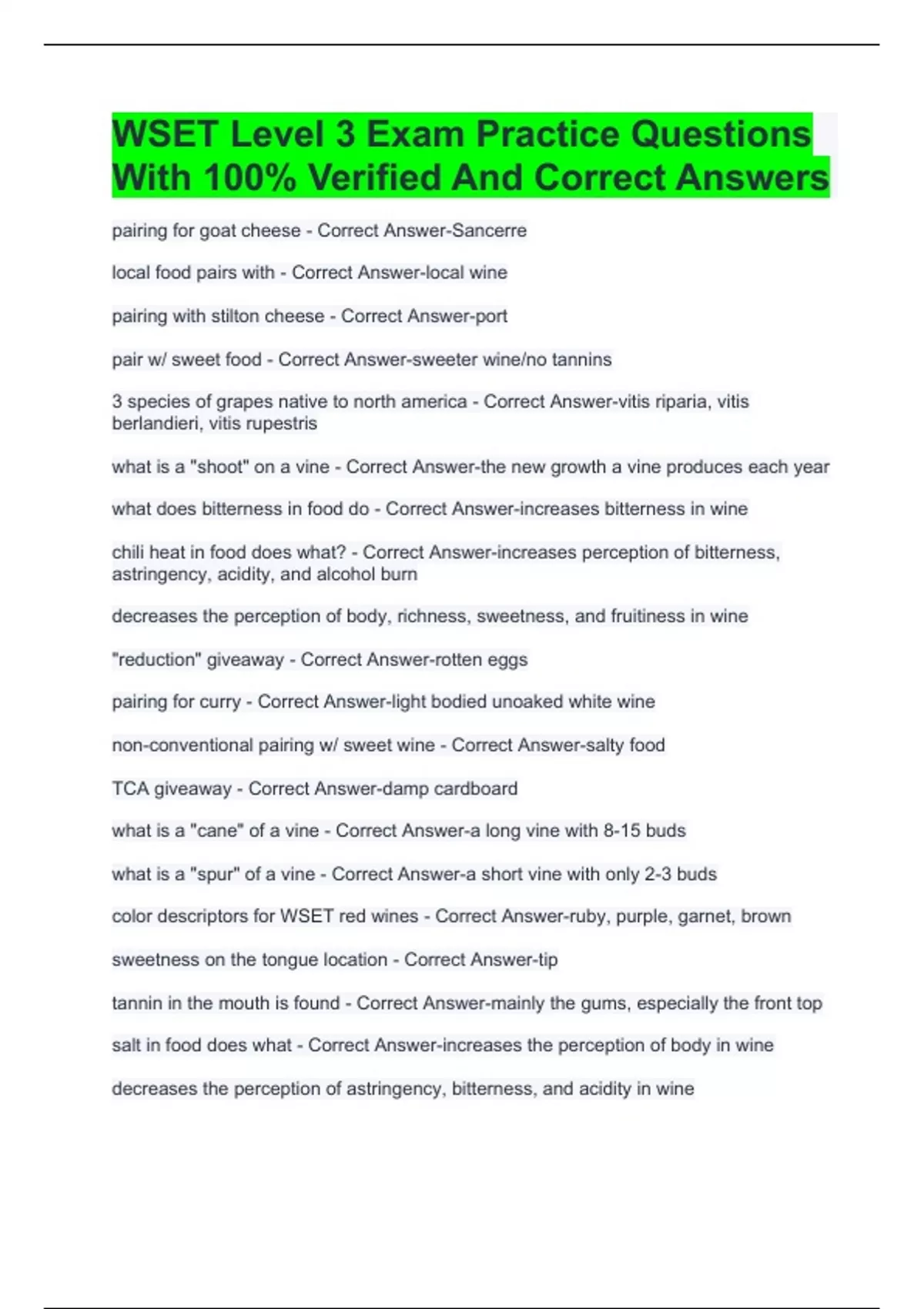 wset level 3 exam practice questions with 100 ver