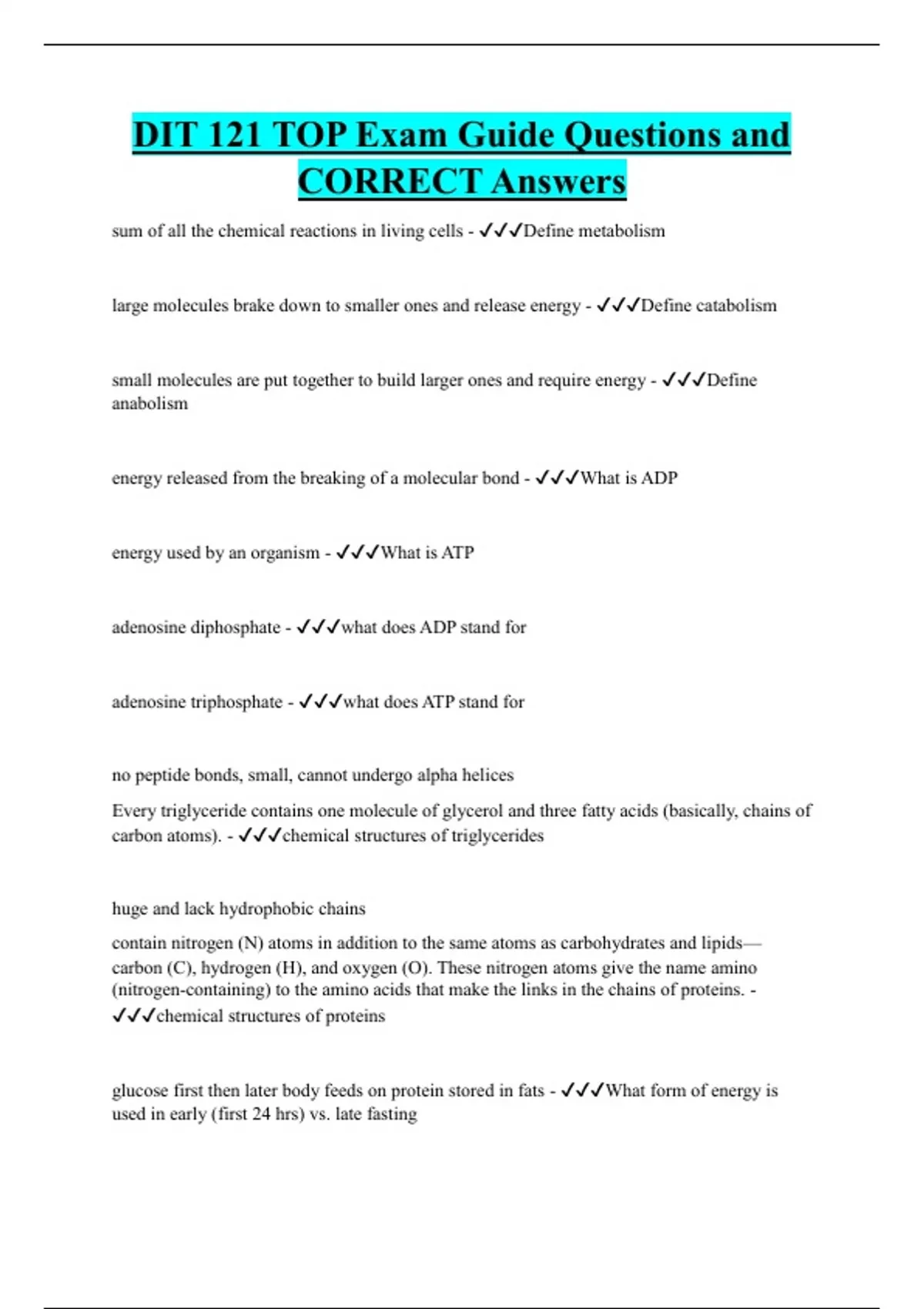 DIT 121 TOP Exam Guide Questions and CORRECT Answers