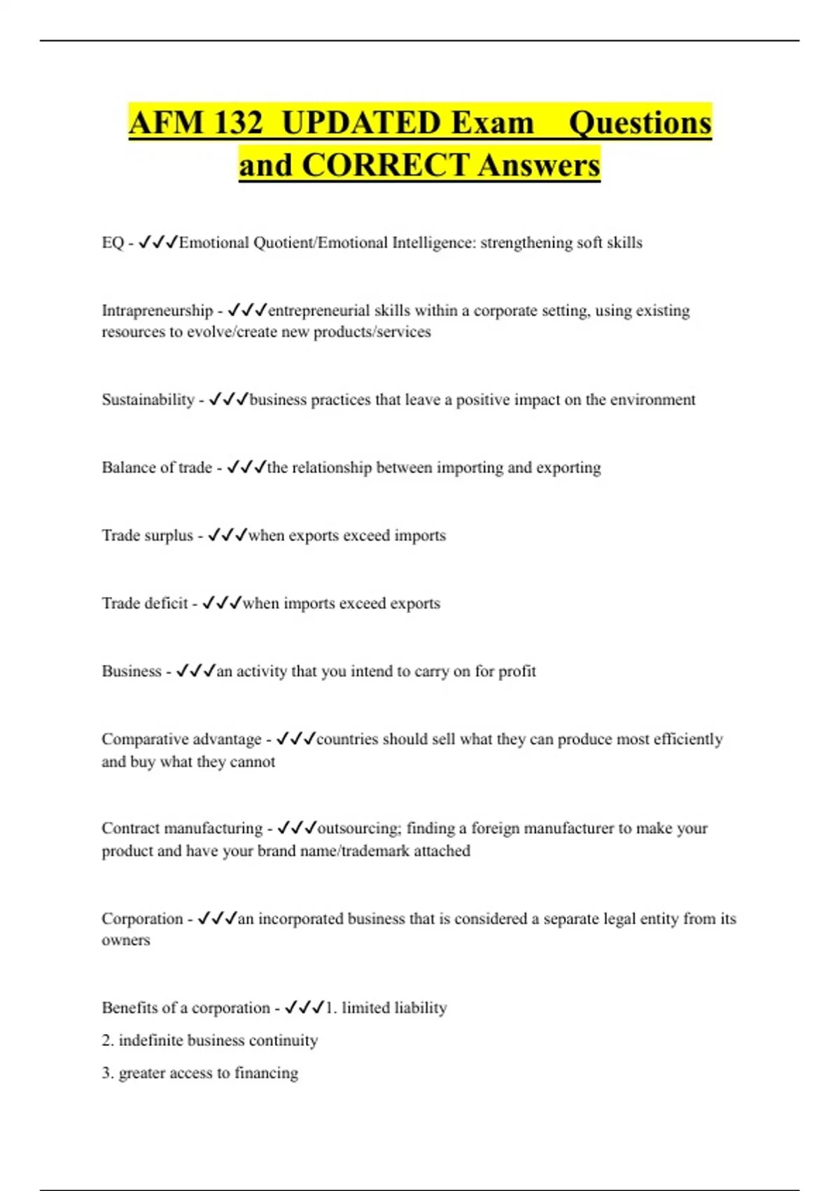 AFM 132 UPDATED Exam Questions and CORRECT Answers