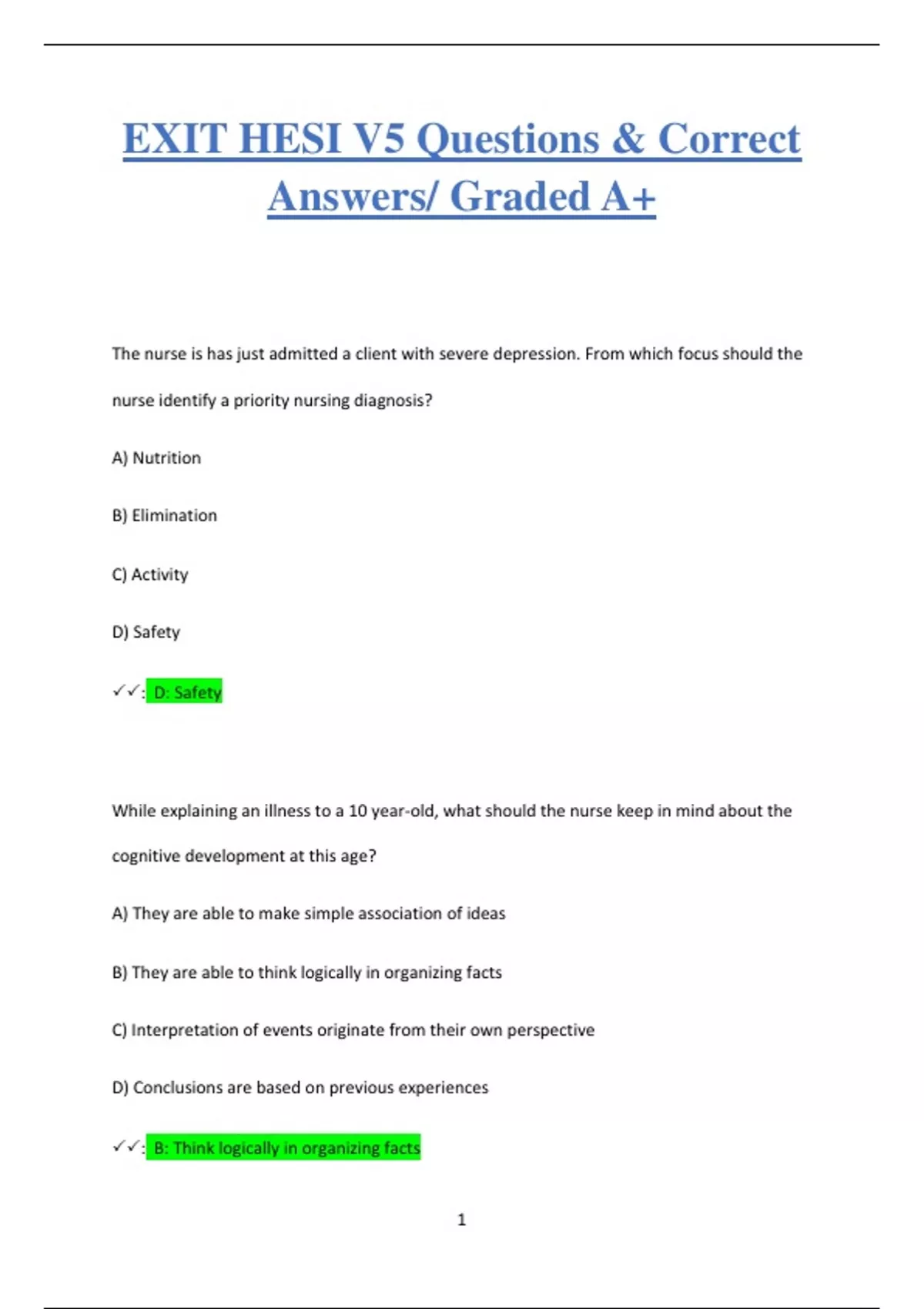 EXIT HESI V5 Questions & Correct Answers/ Graded A+