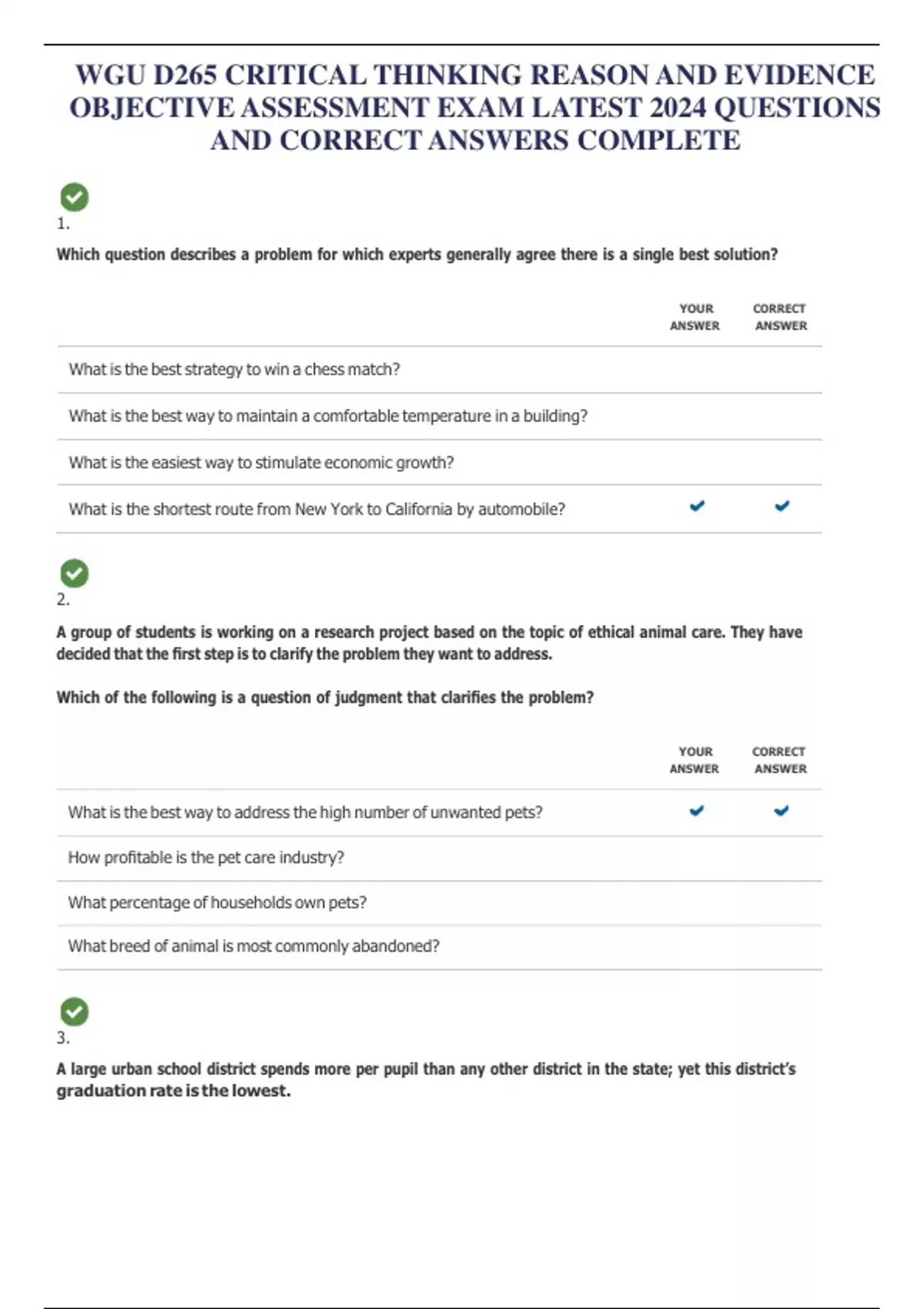 WGU D265 CRITICAL THINKING REASON AND EVIDENCE OBJECTIVE ASSESSMENT EXAM LATEST 2024 QUESTIONS AND CORRECT ANSWERS (EVERYTHING YOU NEED TO PASS OA EXAM)
