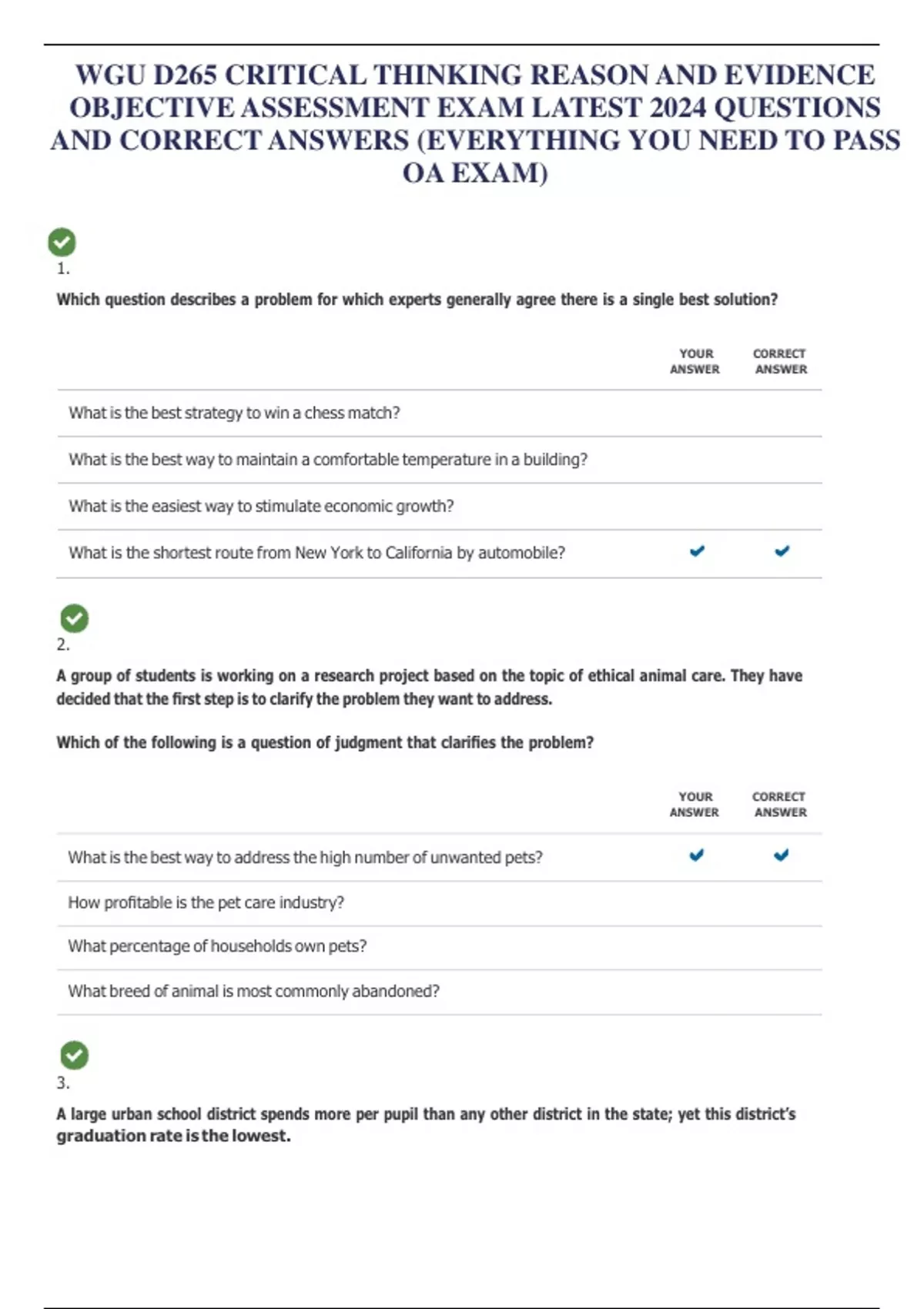 WGU D265 CRITICAL THINKING REASON AND EVIDENCE OBJECTIVE ASSESSMENT EXAM LATEST 2024 QUESTIONS AND CORRECT ANSWERS COMPLETE
