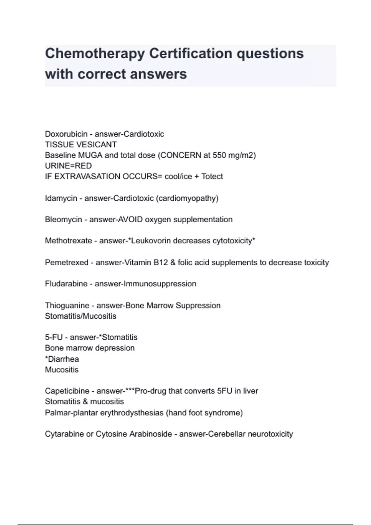 Chemotherapy Certification questions