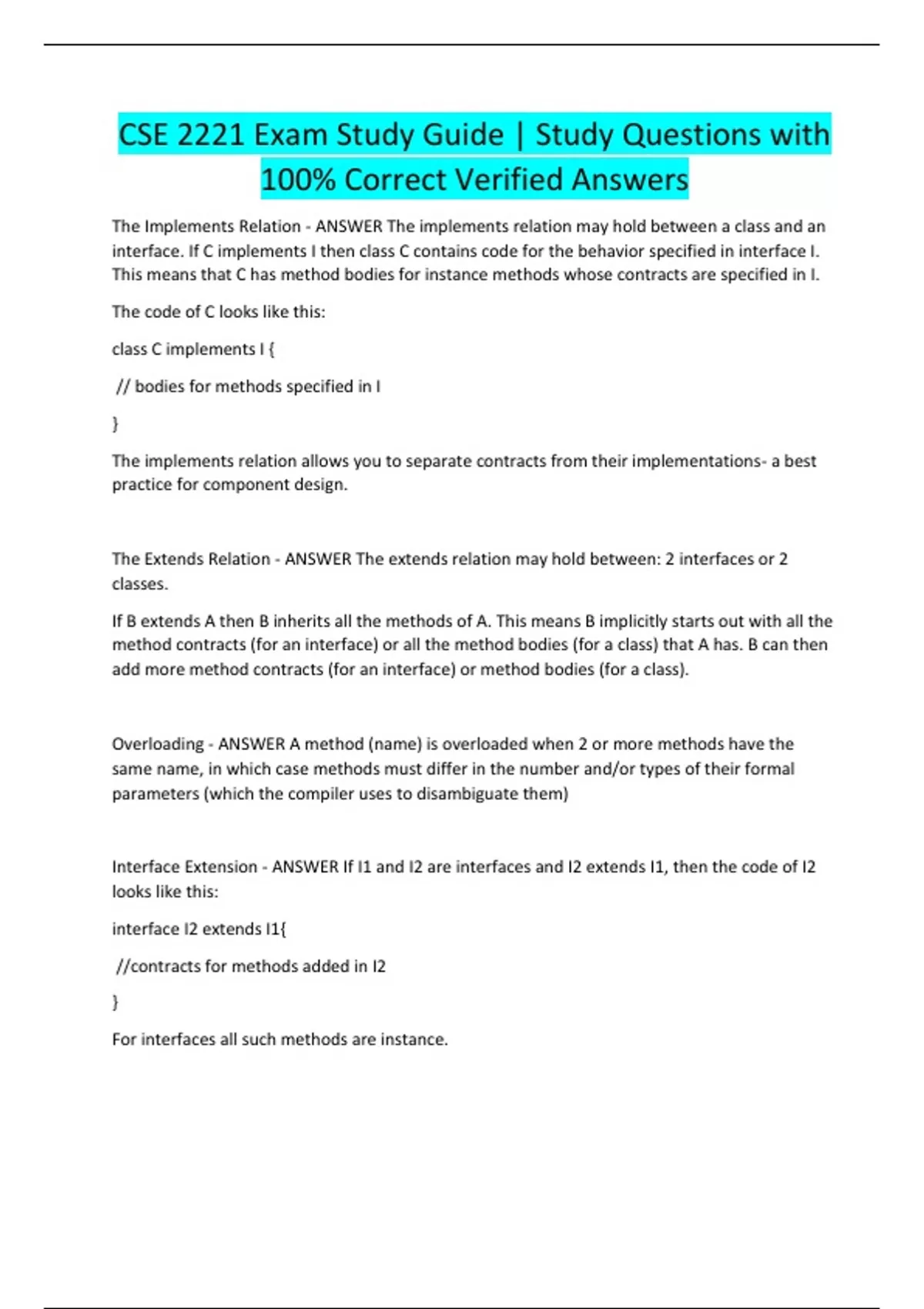 CSE 2221 Exam Study Guide | Study Questions with 100% Correct Verified Answers