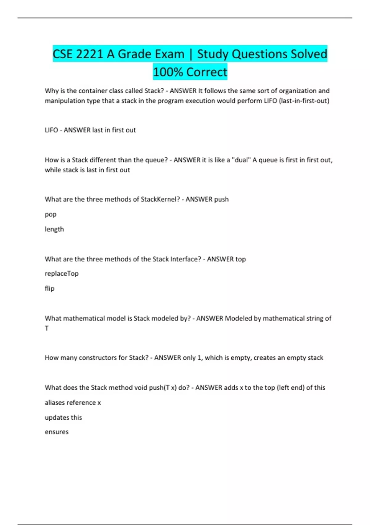 CSE 2221 A Grade Exam | Study Questions Solved 100% Correc