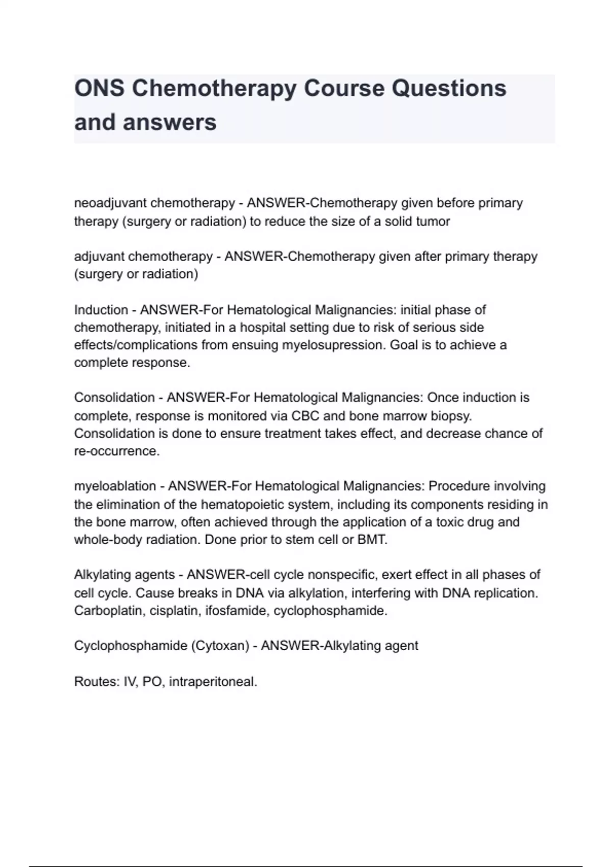 ONS Chemotherapy Course Questions