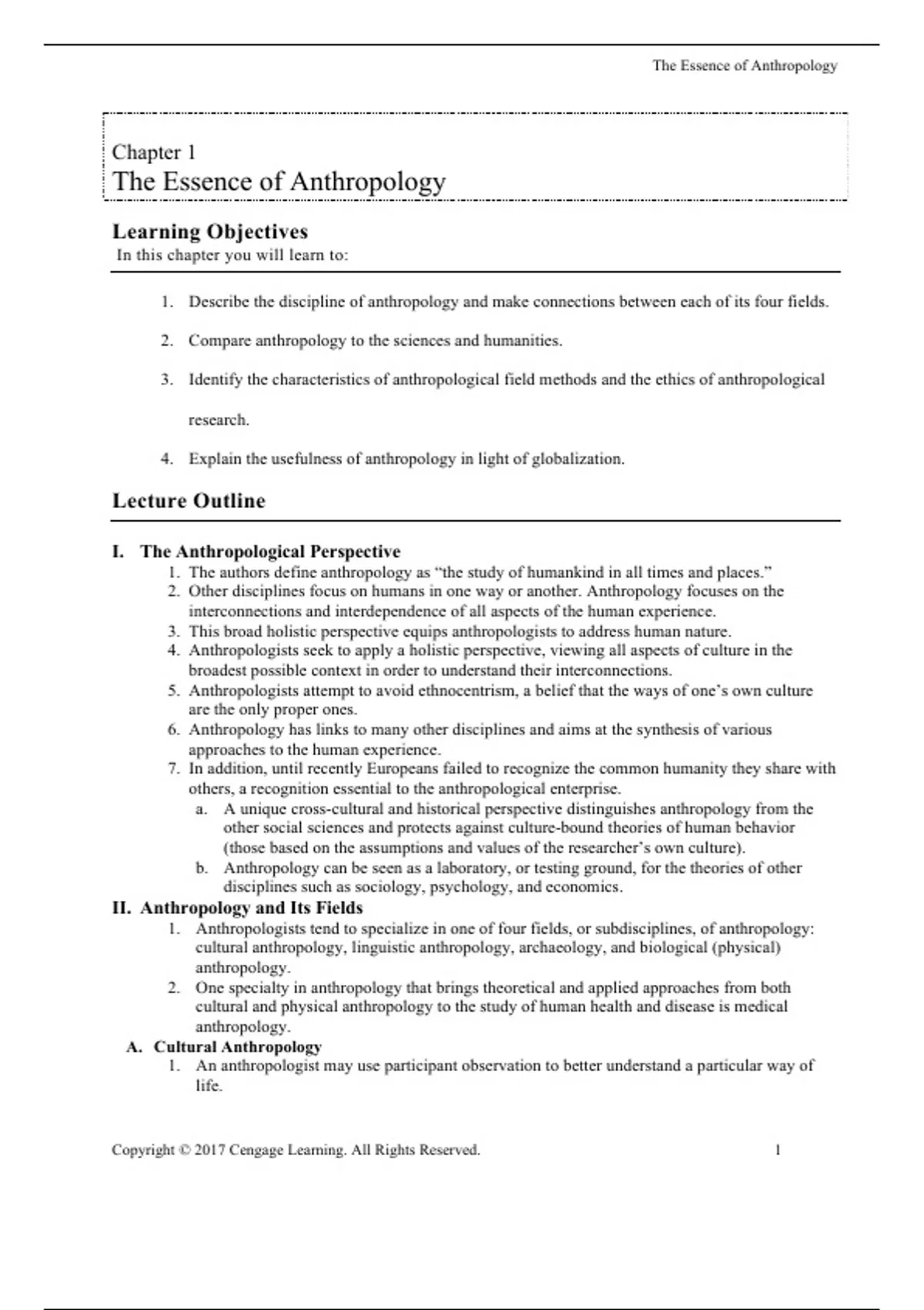 I. The Anthropological Perspective