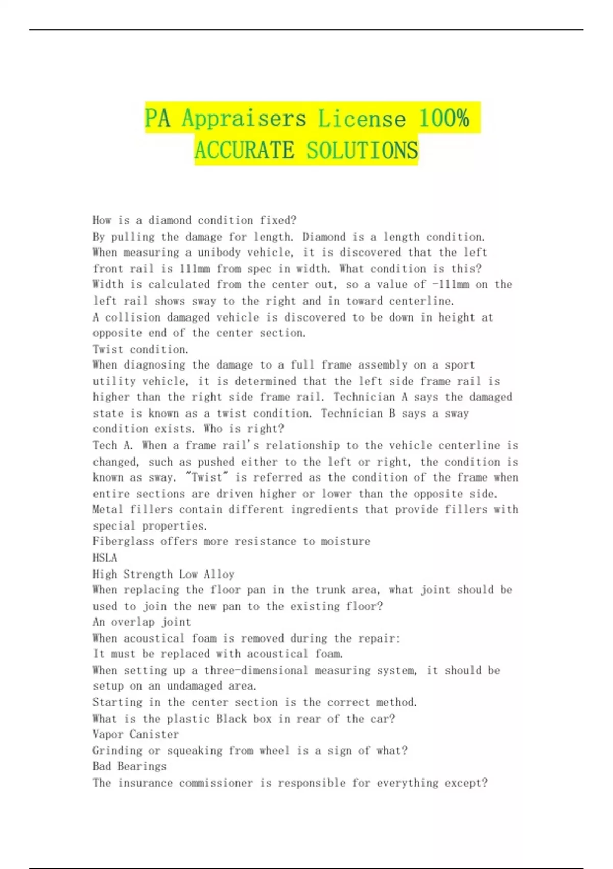 state is known as a twist condition. Technician B says a sway