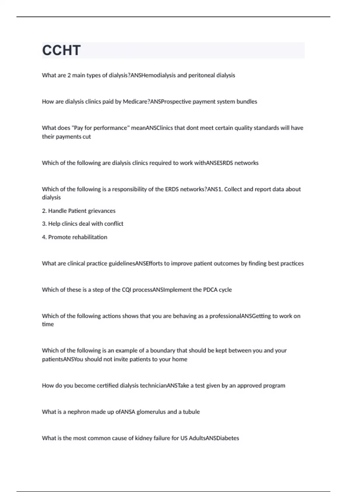 CCHT Test -Practice Questions With Complete Solutions (100%DONE)