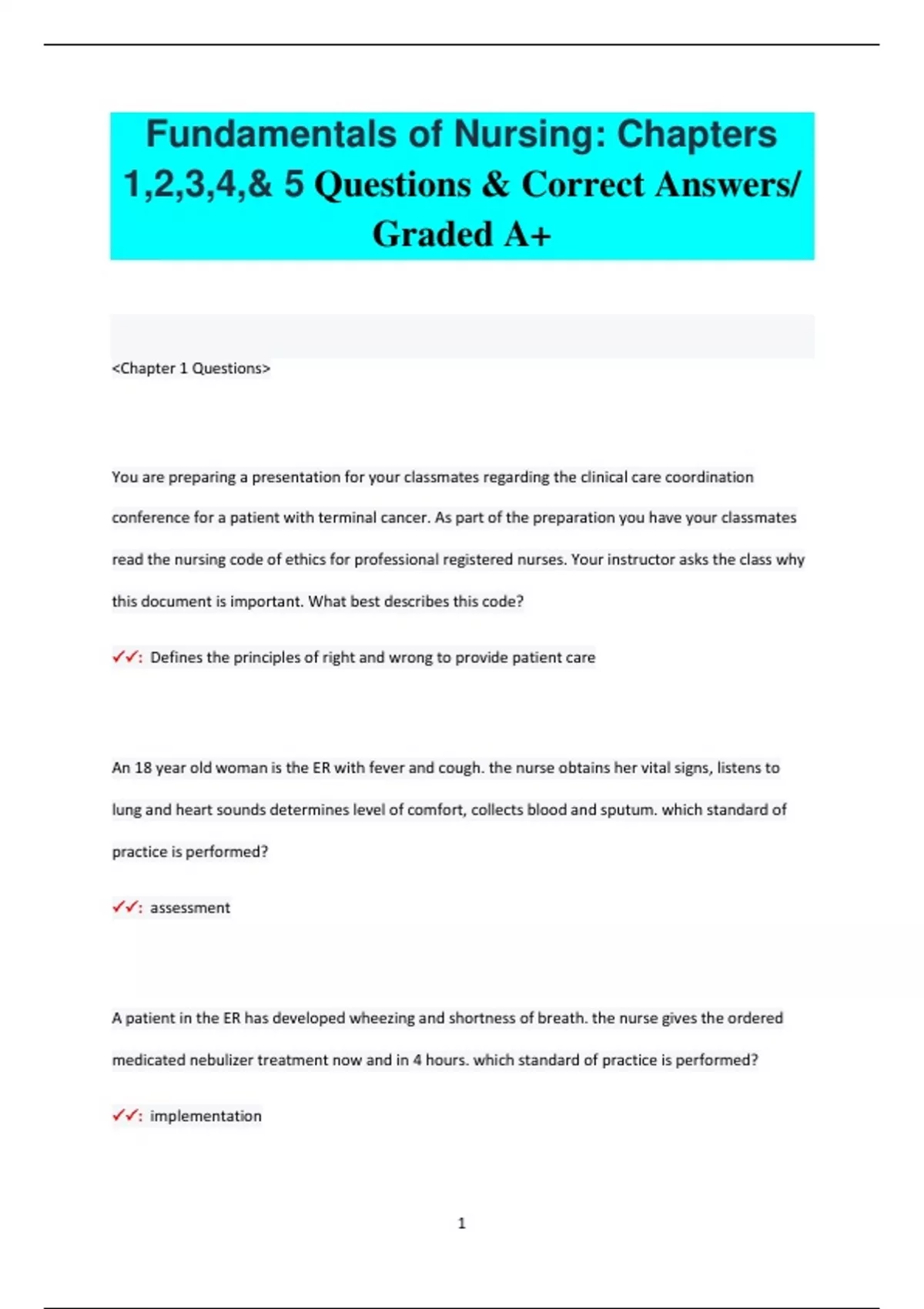 Fundamentals of Nursing: Chapters 1,2,3,4,& 5 Questions & Correct Answers/ Graded A+