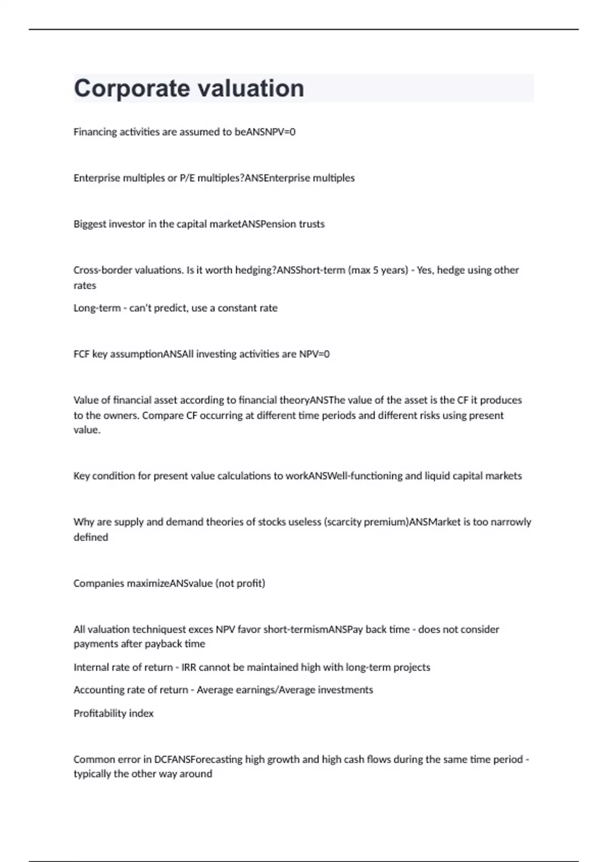 Corporate valuation Exam Questions And Answers (VERIFIED 100%)