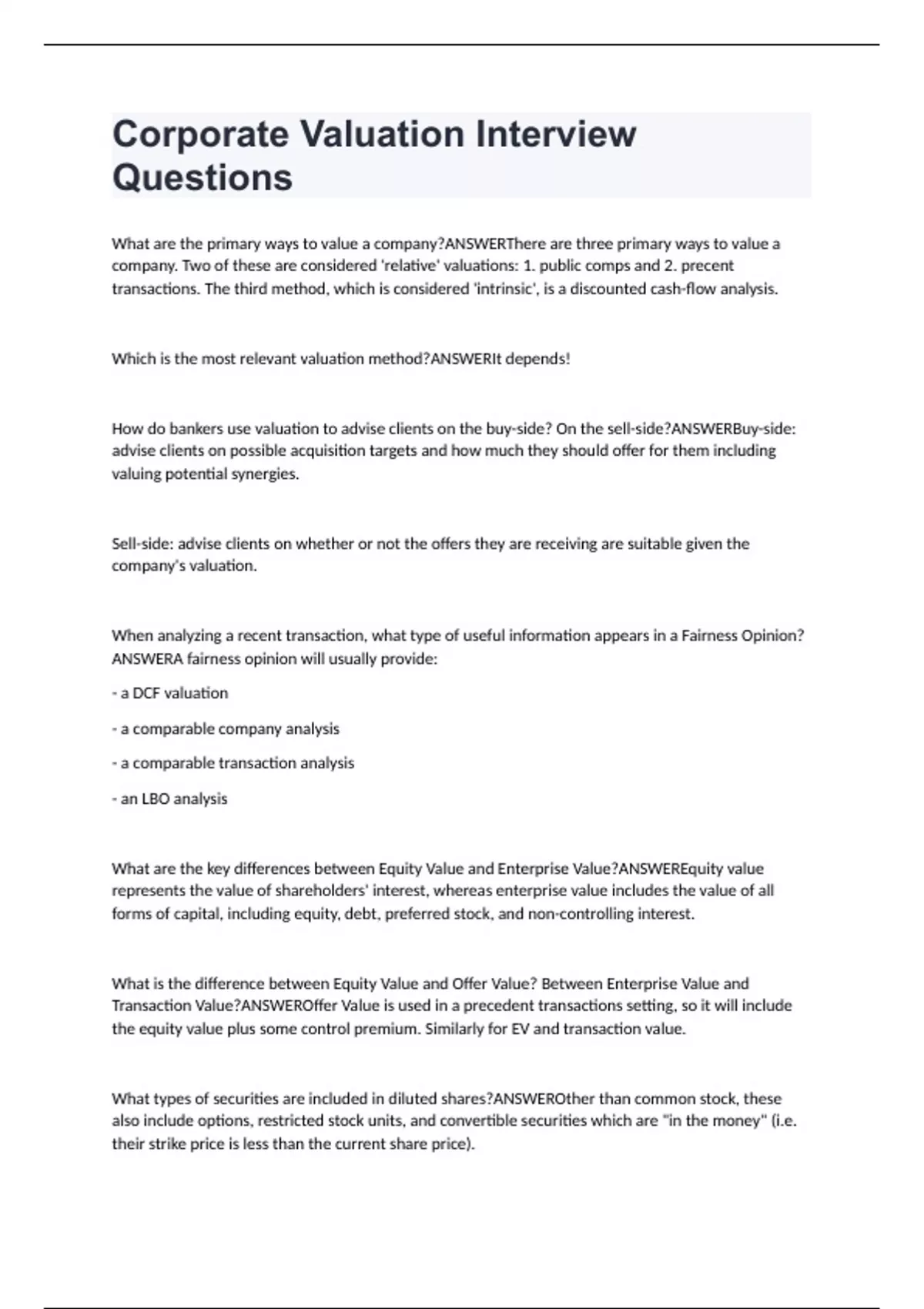 Corporate Valuation Interview Questions And Answers Test Correctly Done