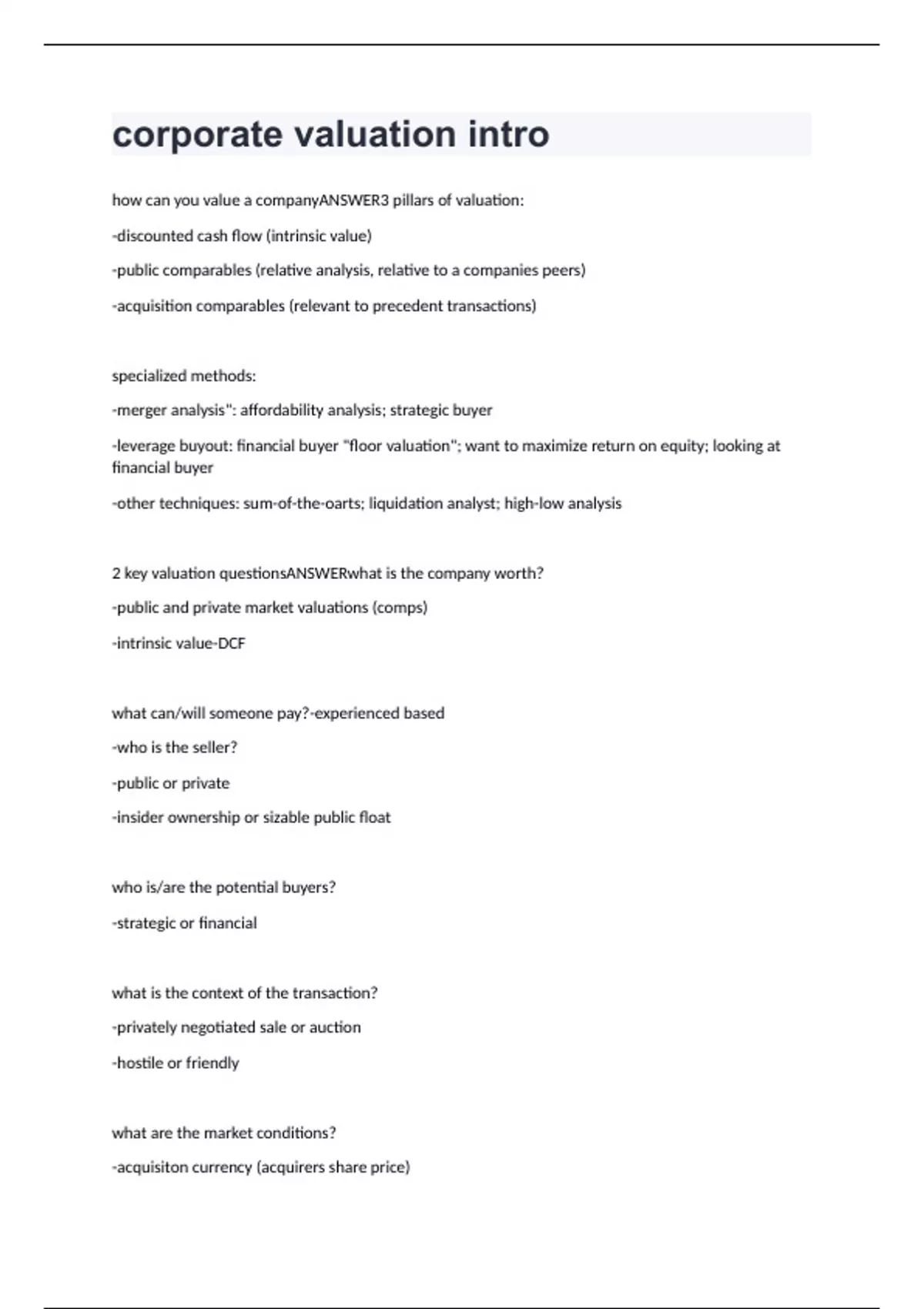 corporate valuation intro Exam Questions And Answers (VERIFIED ANSWERS)