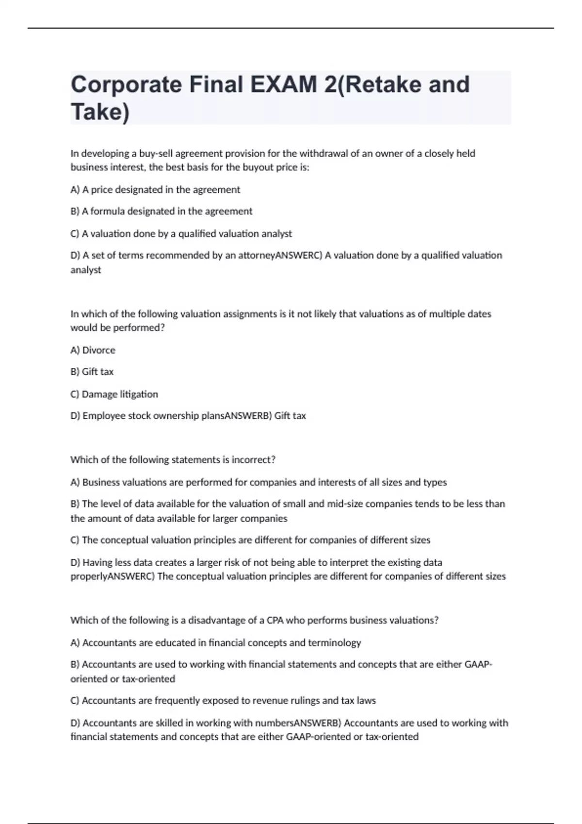 Corporate Final EXAM 2(Retake and Take) Questions With Correct Answers (VERIFIED 100%)