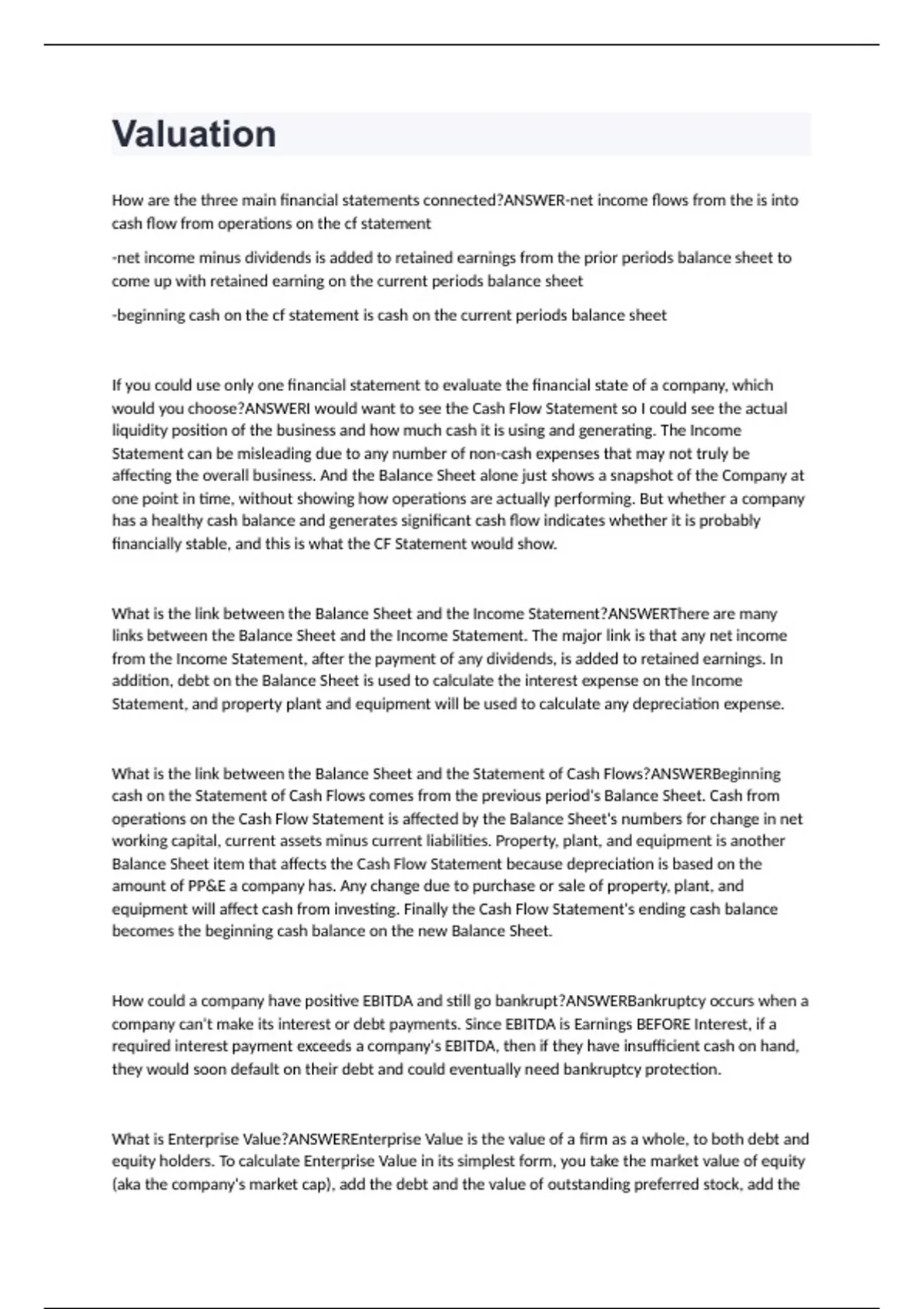 Valuation Test -Questions And Answers (VERIFIED ANSWERS)