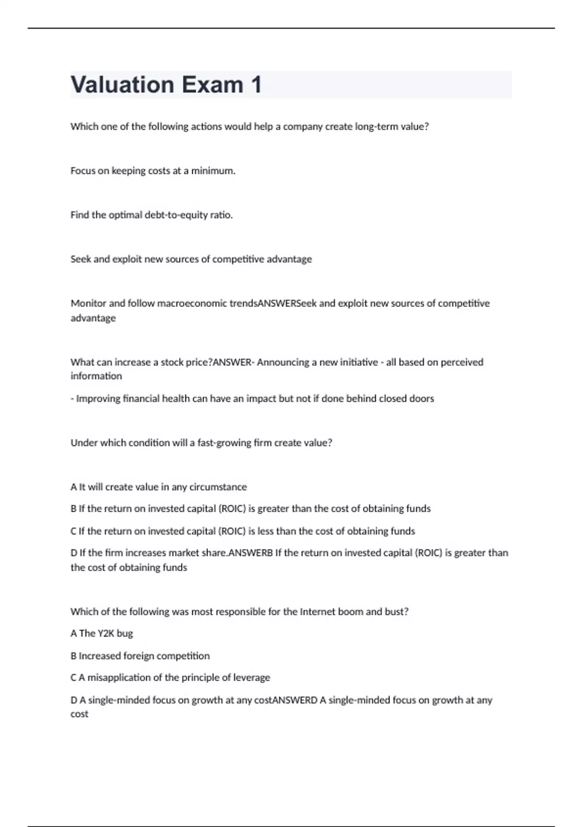 Valuation Exam 1 Questions With Correct Answers (RATED 100%)