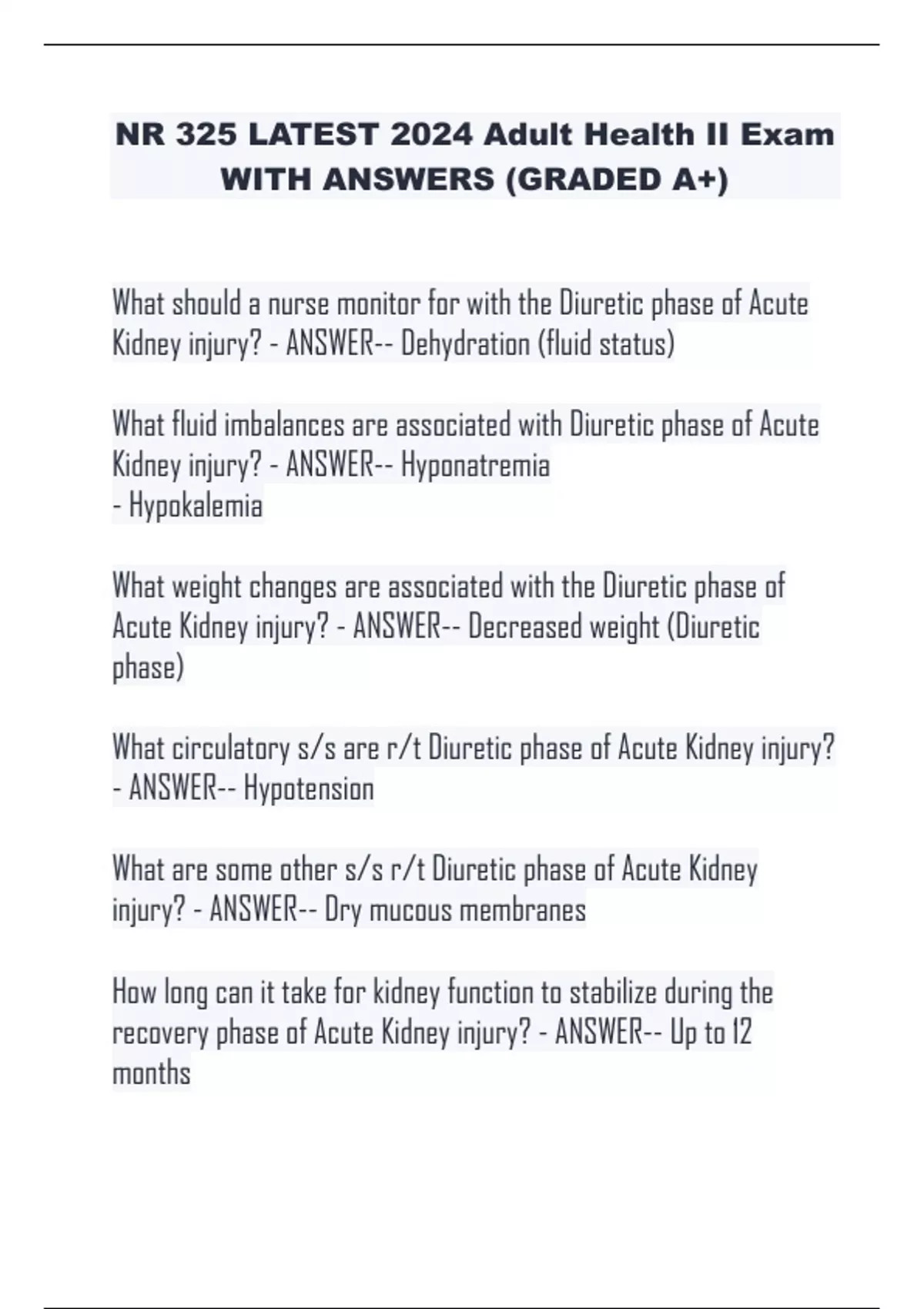 nr 325 adult health ii exam with answers