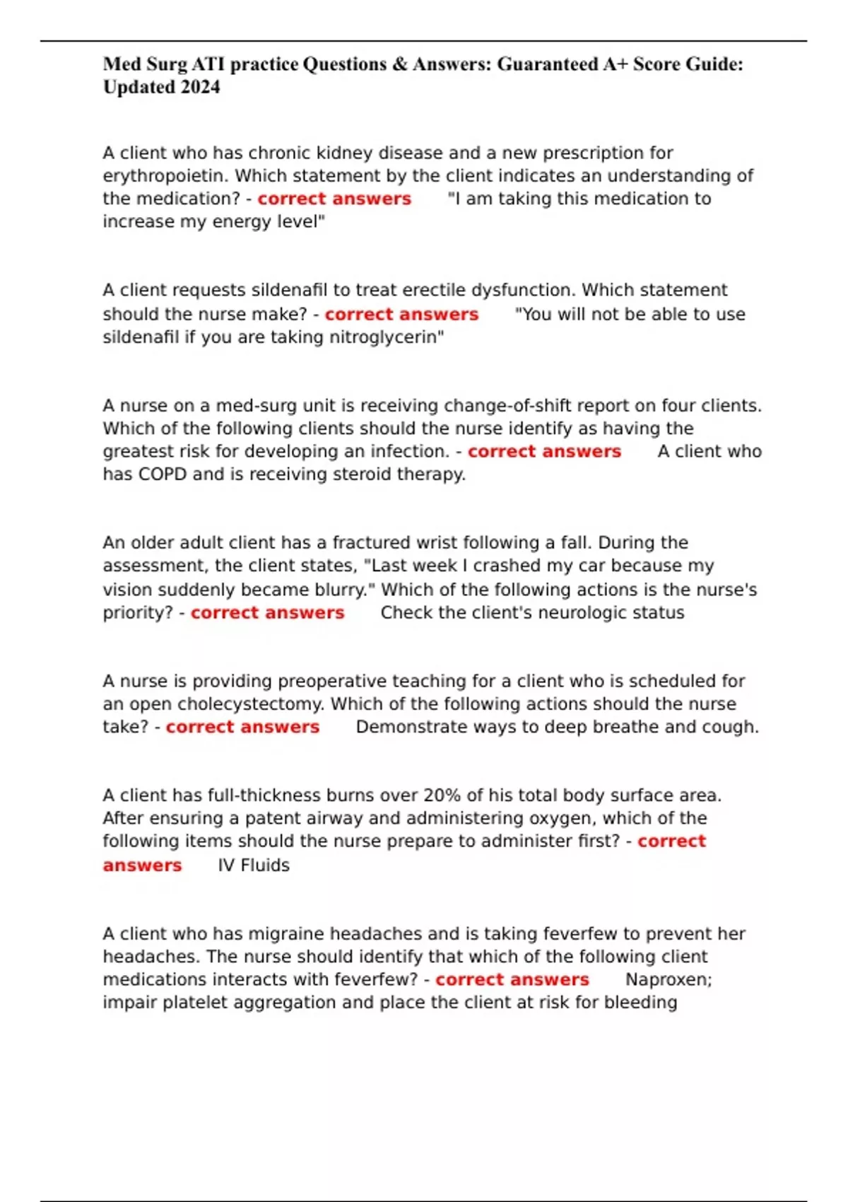 Med Surg ATI practice Questions & Answers: Guaranteed A+ Score Guide: Updated 2024