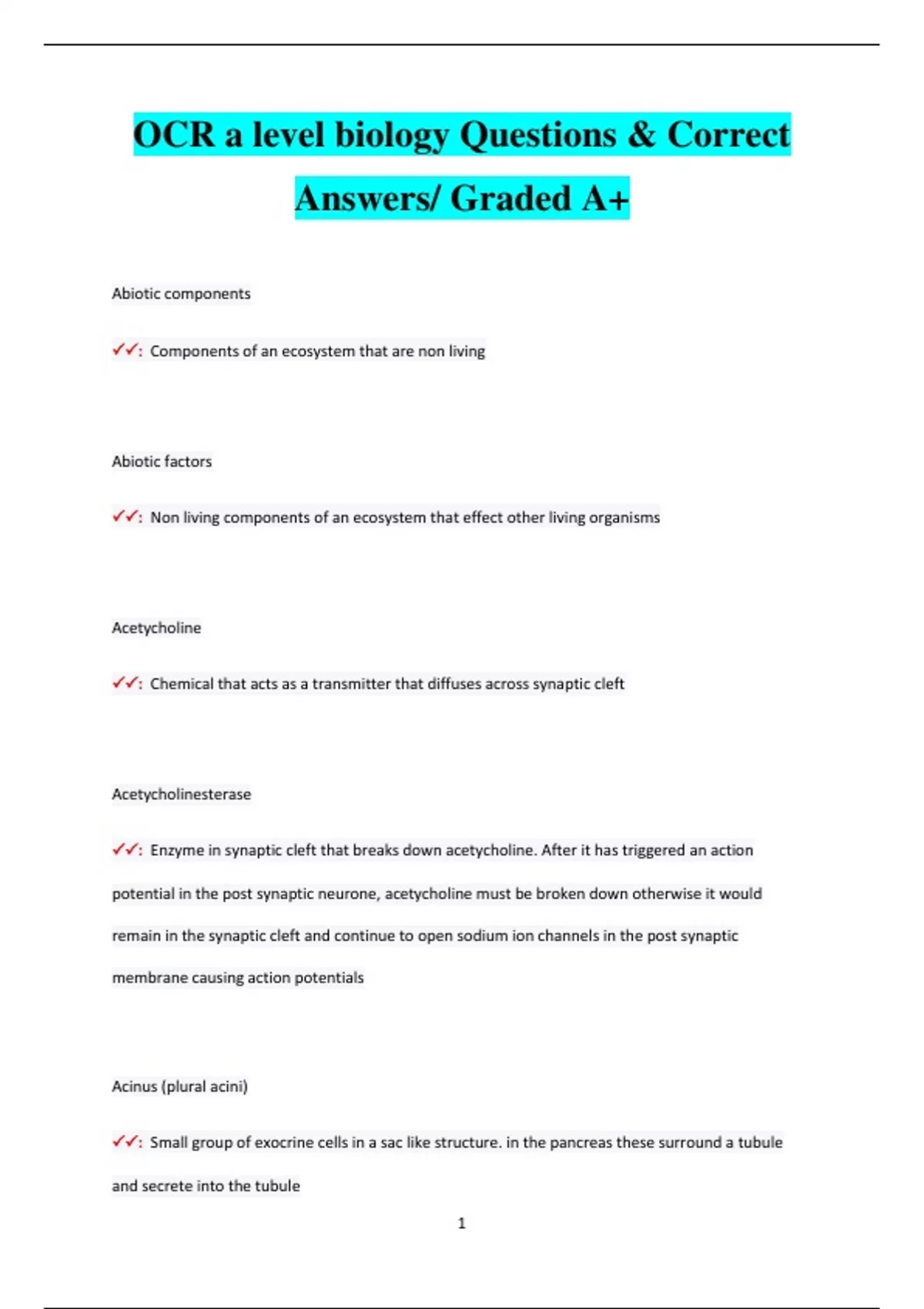 OCR a level biology Questions & Correct Answers/ Graded A+