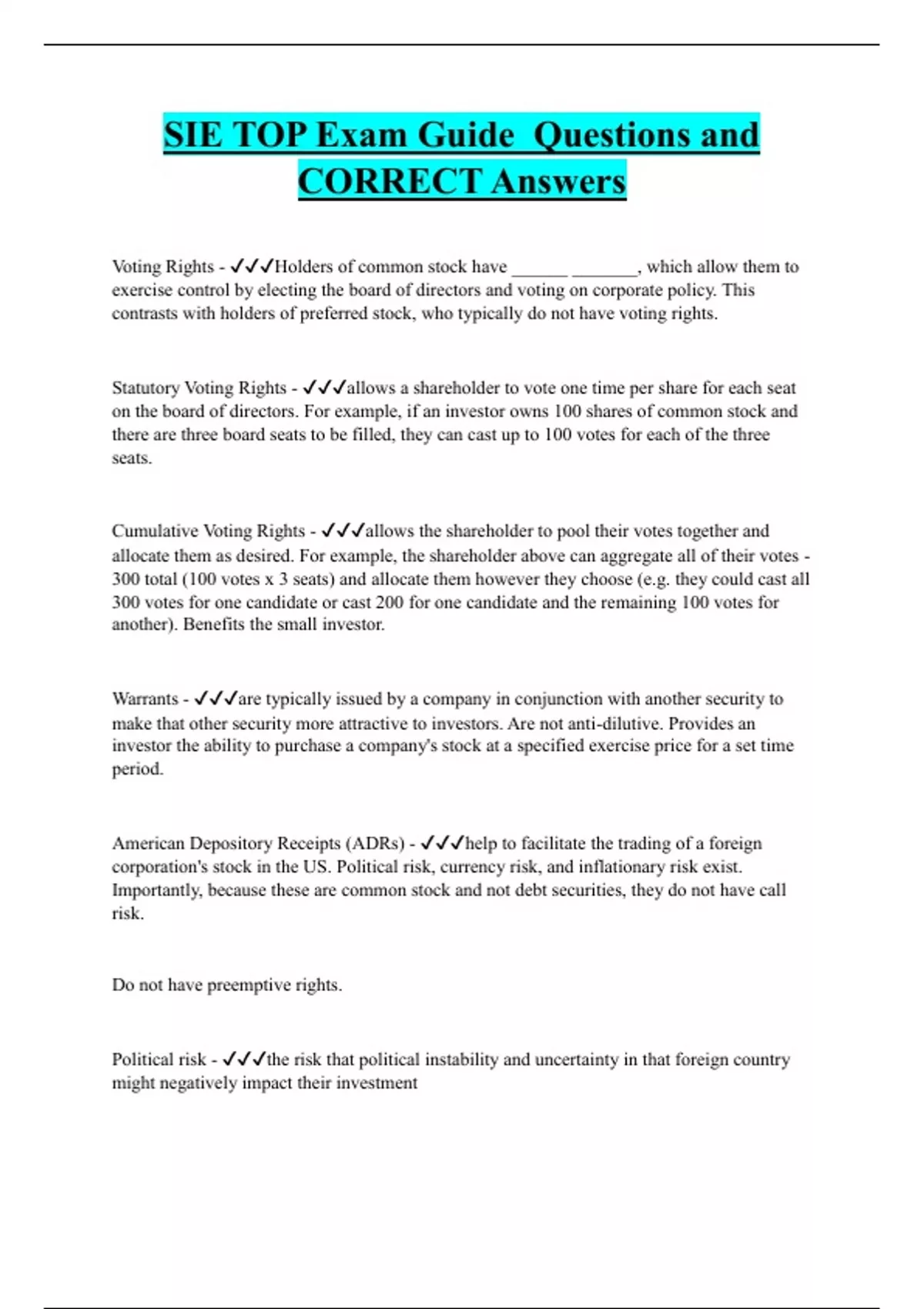 SIE TOP Exam Guide Questions and CORRECT Answers