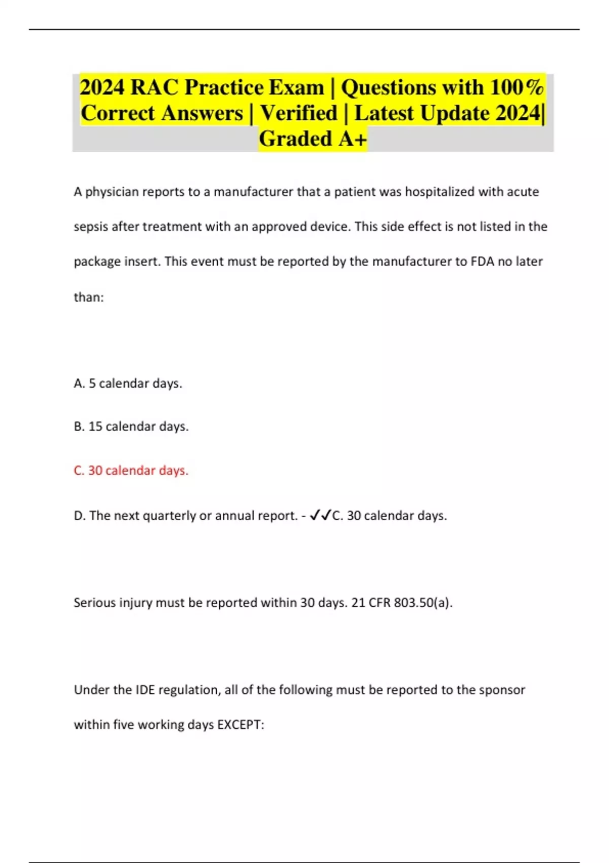2024 RAC Practice Exam | Questions with 100% Correct Answers | Verified | Latest Update 2024| Graded A+
