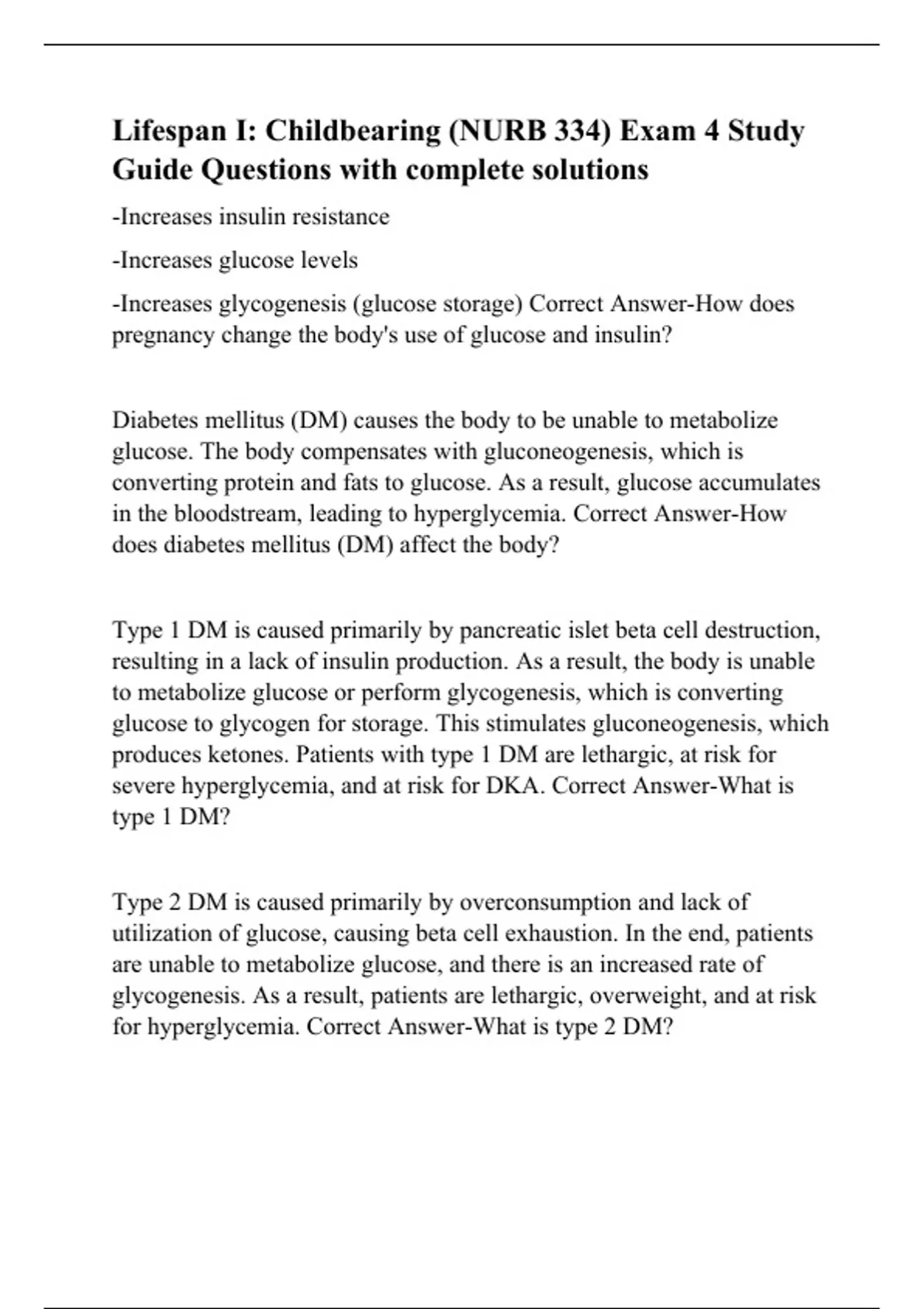 Lifespan I: Childbearing (NURB 334) Exam 4 Study Guide Questions with complete solutions