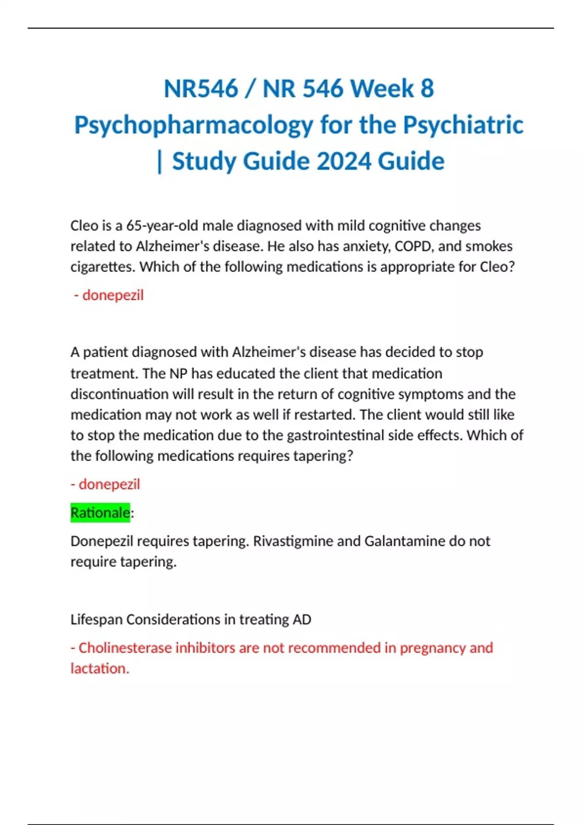 NR546 / NR 546 Week 8 Psychopharmacology for the Psychiatric | Study Guide 2024 Guide NR546 / NR 546 Week 8 Psychopharmacology for the Psychiatric | Study Guide 2024 Guide NR546 / NR 546 Week 8 Psychopharmacology for the Psychiatric | Study Guide 2024 Guide