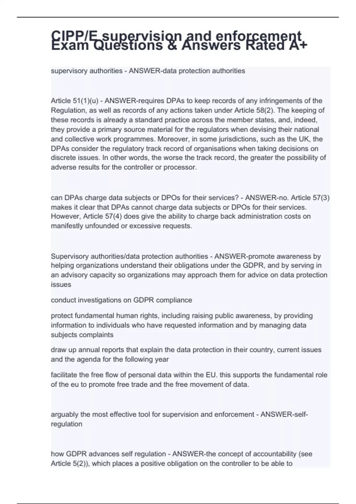 CIPP/E supervision and enforcement Exam Questions & Answers Rated A+